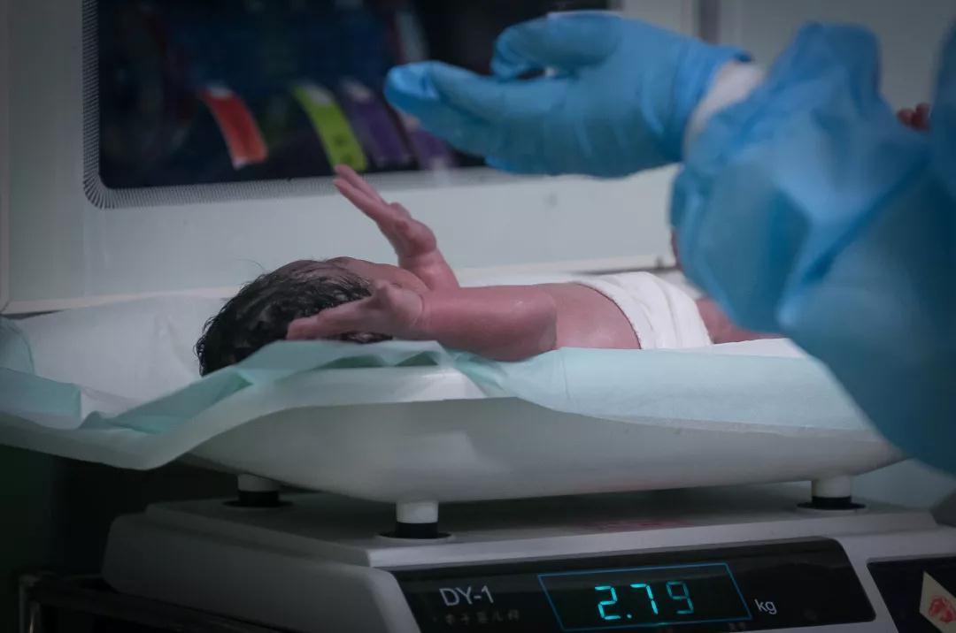 12月2日上午,广州市第八人民医院,35岁的艾滋病病毒感染者阿晴顺利生下一个女儿,重2.79千克。称重时,她仿佛在向世界招手。