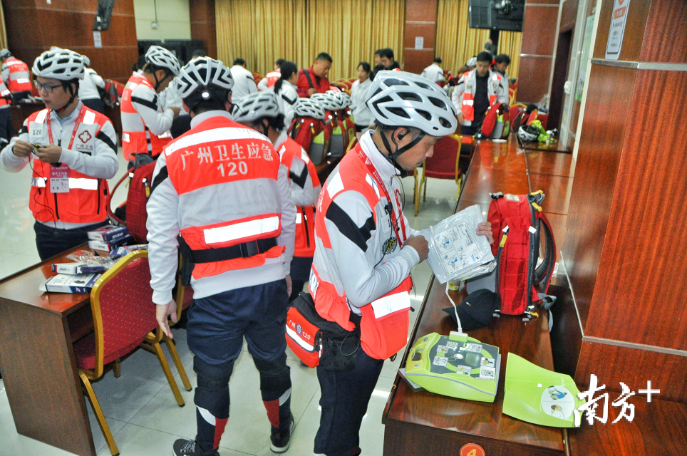 在广马抢救病人,有何特殊之处?李辉认为,院内院外的急救,存在一些差异,“在院内你是一支团队,在院外你是一个人,而且暴露在公众的视野中,所以你要做到更专业、更规范”。赛前,广州市卫生健康委员会对50名AED队员进行集中培训,规范化流程,细致到呼叫的语言,都做了统一的规范。李辉说,每一名队员需要将自己“清零”,模拟抢救流程,才能“上岗执业”。