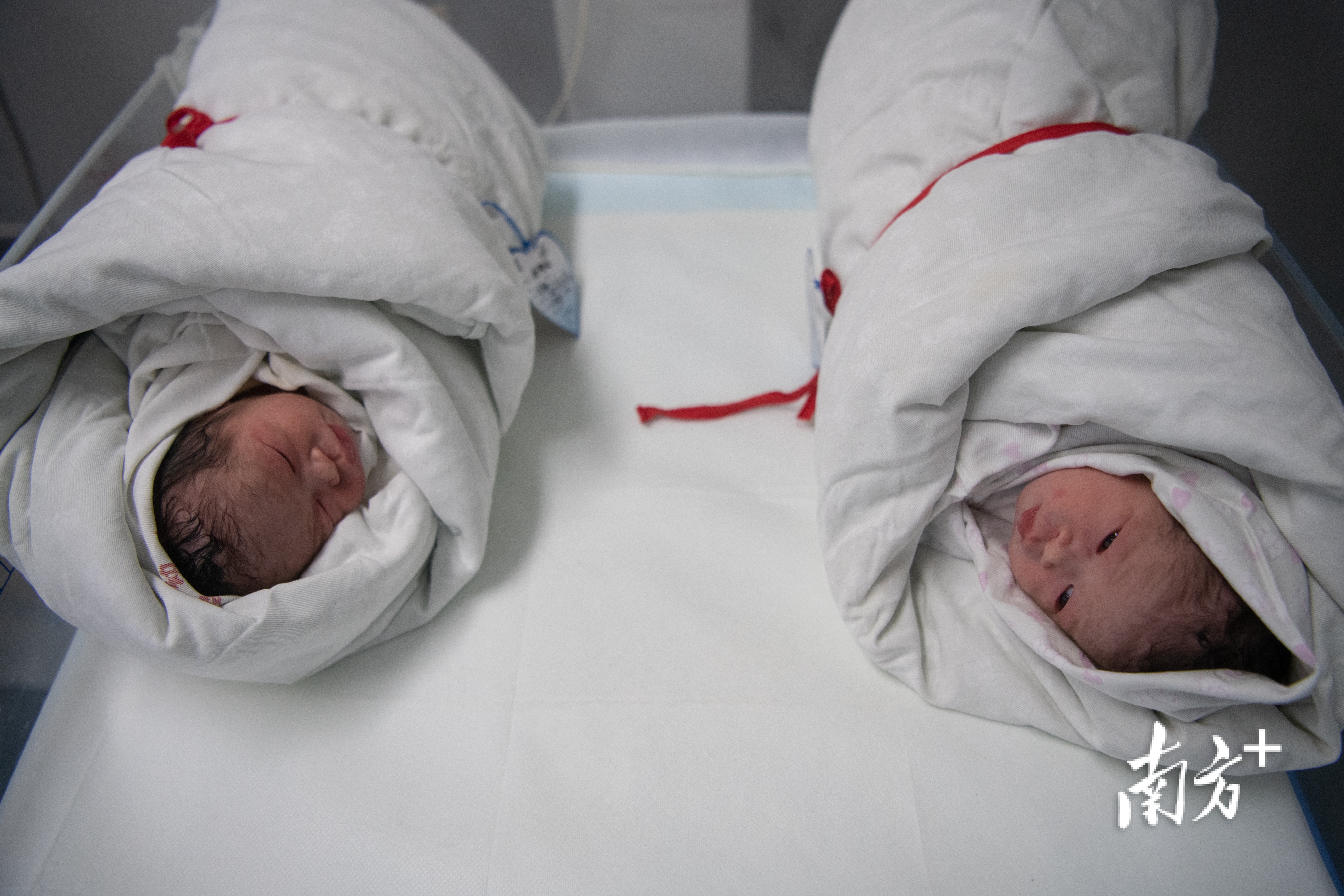 10时30分,两个孩子穿上了衣服,被送往新生儿科监护。母子分别前,助产士将孩子抱到邱桥丽身旁,看着一对“棉袄”顺利出生,她不再焦虑,脸上泛起了笑容。