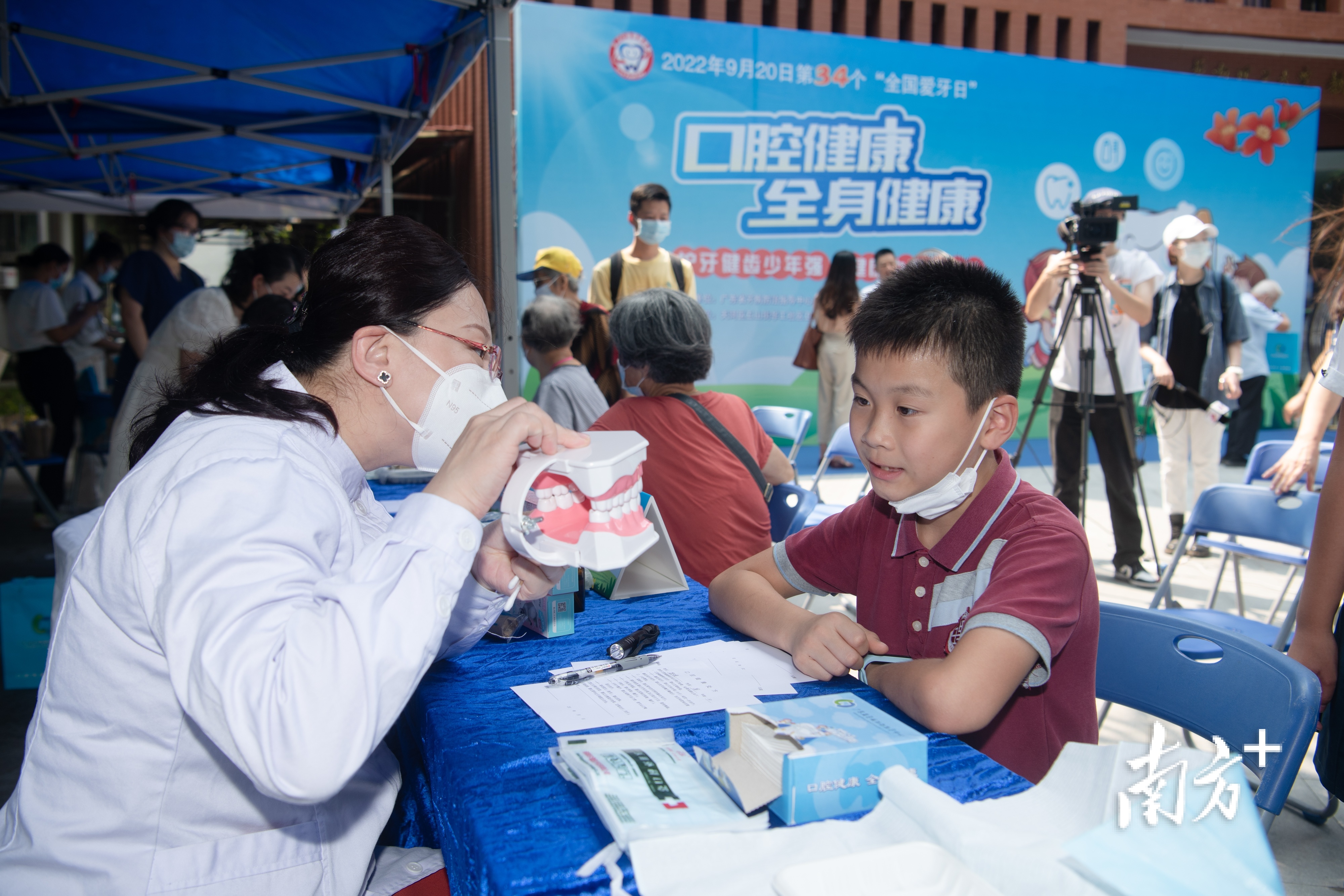 2022年9月20日是第34个“全国爱牙日”。9月19日上午,广州市疾病预防控制中心会同广东省牙病防治指导中心举办义诊活动,为群众提供口腔检查及健康咨询,指引儿童及青少年做好口腔保健。