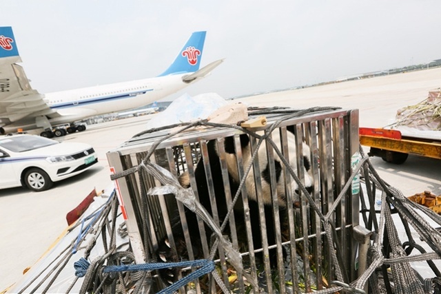 4月29日上午9:30,“梅清”乘专车抵达南航国内货站,开始飞行前的准备。据南航国内货站工作人员介绍,与以往运输不同的是,这次大熊猫“梅清”正处于发情期,情绪比较焦躁。他们总结此前运输大熊猫保障经验,尽量缩减大熊猫在收运平台打包、称重的时间,进行快速收运、组装,为大熊猫“梅清”创造一个尽量安静的候机环境。