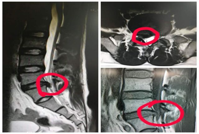 (该男子的影像学检查可见明显腰椎间盘突出)