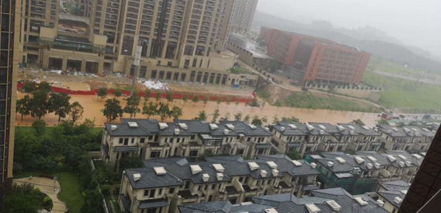 “我住在龙湖天宸原著一期,对面就是华润天合。两个楼盘之间,就是业主出入小区最重要的一条市政路悦景路。从阳台望过去,整条路都被水淹,许多车辆都被挡在帝景山庄门前那一段”。张小姐告诉记者。
