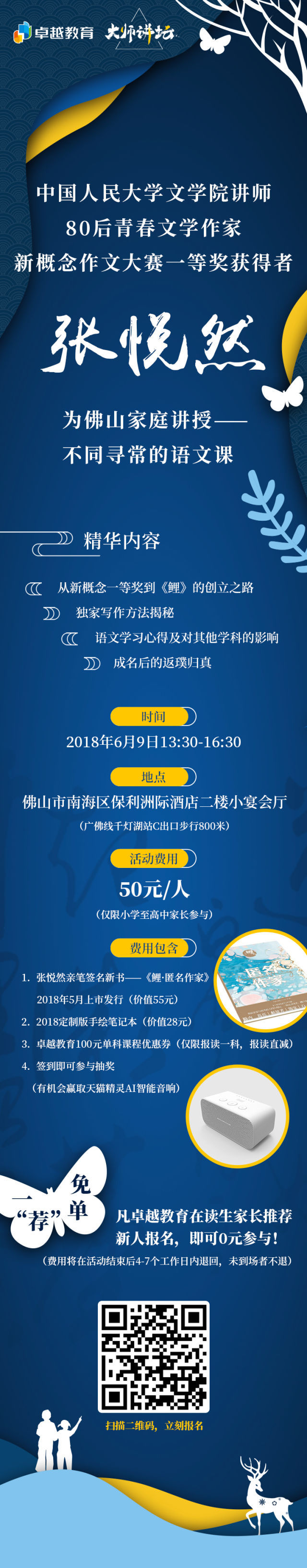 这些年,“悦然老师”、“张主编”在不断成长,而当年她的80后迷弟迷妹们也到了带娃的年龄。这一次,张悦然要来佛山,为家长和孩子们开讲一门不一样的“语文课”!