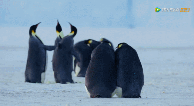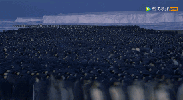 为了保证育儿袋中的蛋的温度,在严酷的寒风中,企鹅们形成了壮观的合作景象: