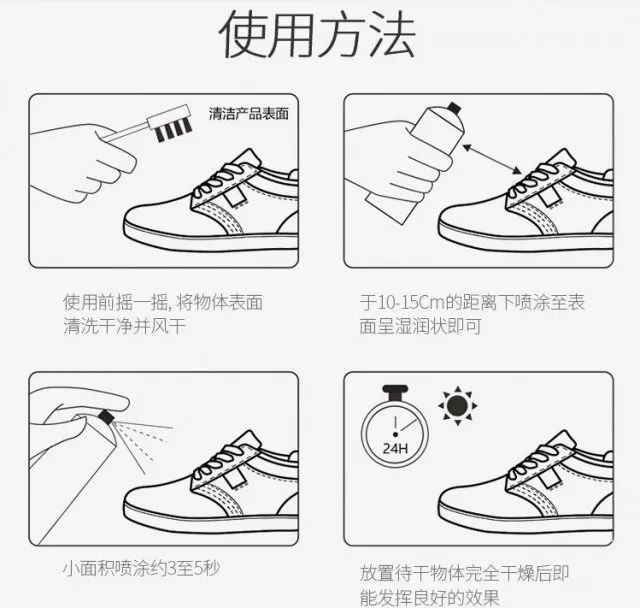 这么超能力的QS多功能防水防污喷雾,用起来还是“傻瓜式”的简单,只要四步。