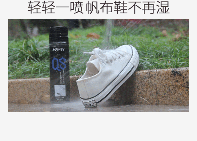 QS防水喷雾采用的是高分子纳米驱水技术,将矽油结合风干型树脂合成驱水高分子。只需要轻轻一喷便能快速成膜。帆布鞋、皮鞋、外套等等都不用担心被淋了。