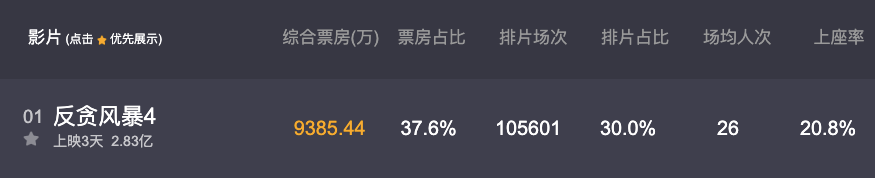 ▲以《反贪4》为例,上映3天,拿下了2.83亿票房。