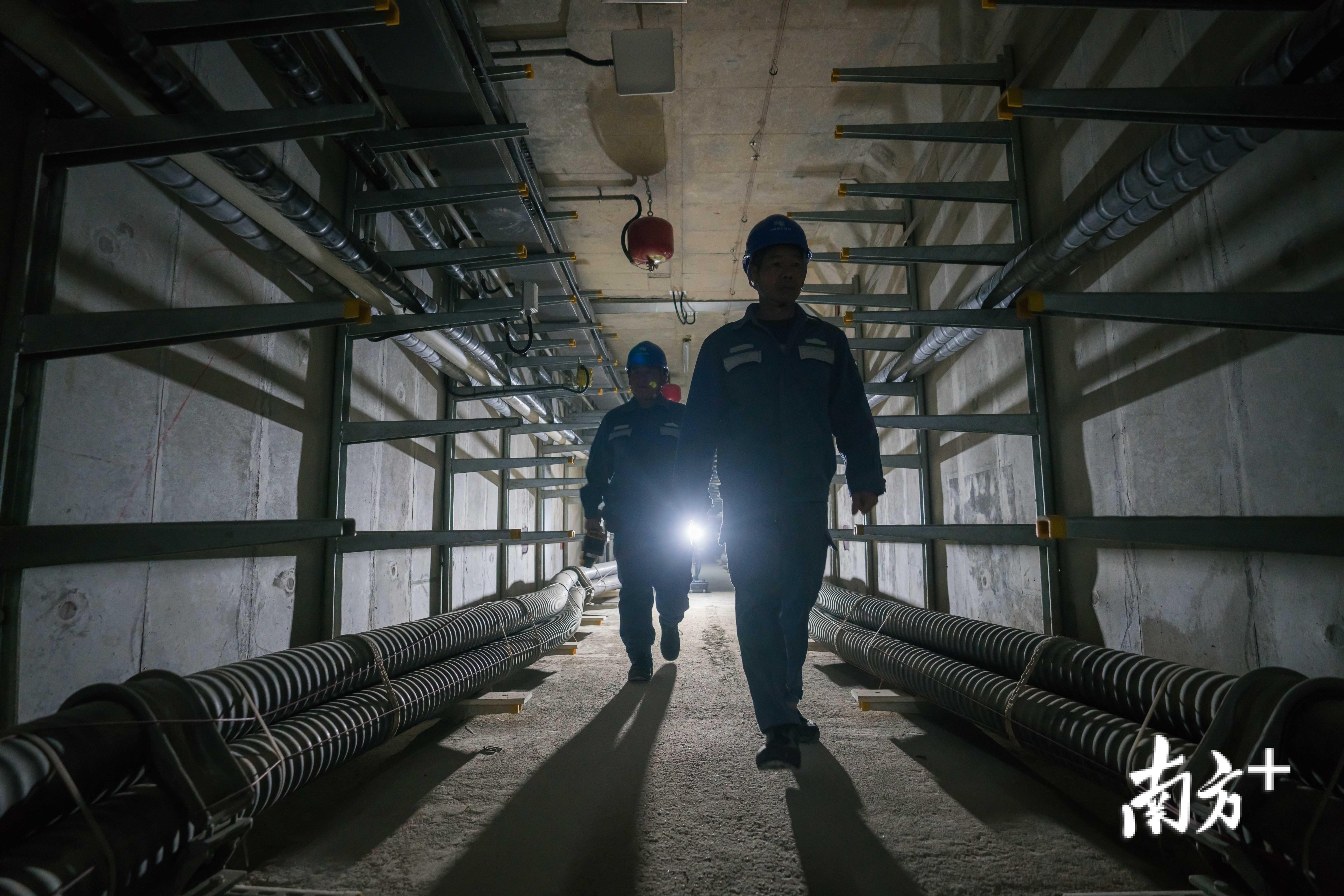 在肇庆新区距离地面8米的地下综合管廊里,躺着一条绵延21公里的“城市动脉”,由于管廊线路的特殊性与重要性,班组需每天进行巡查。其中包括肇庆地区第一条220千伏电缆线路,仅一次单程巡视这条线路就需耗费数小时,全程靠步行。“运动记录最多有五万步左右”。如遇突发险情,电缆班的队员们还需第一时间赶到现场处置。