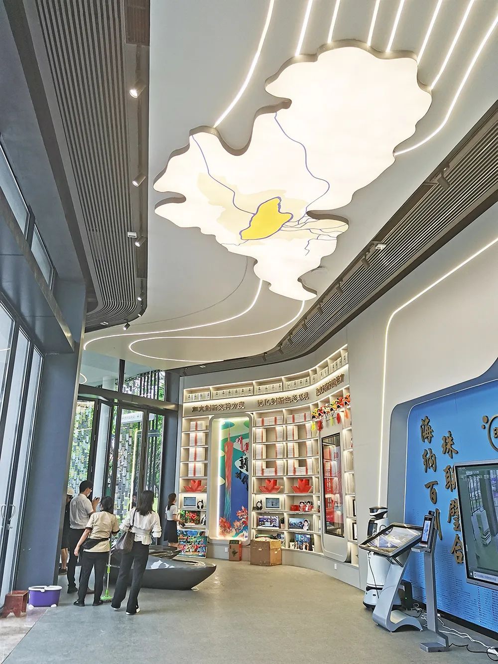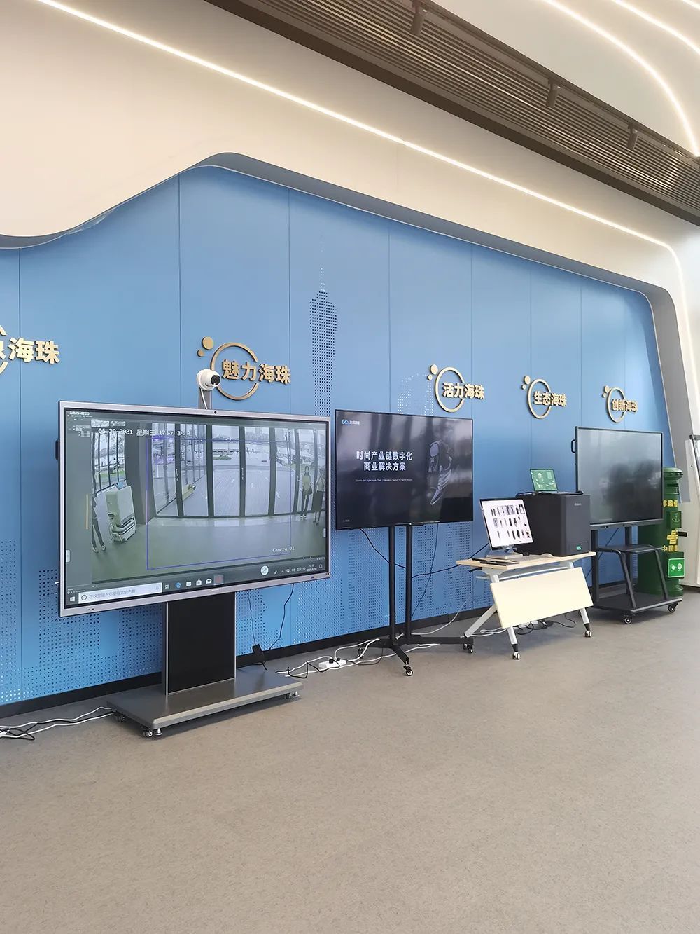 驿站内设置了4个区域。在展示区,以“老城市新活力”为主题策划的“印象海珠”“魅力海珠”“活力海珠”“生态海珠”和“创新海珠”五个板块,全方位展示了海珠形象。