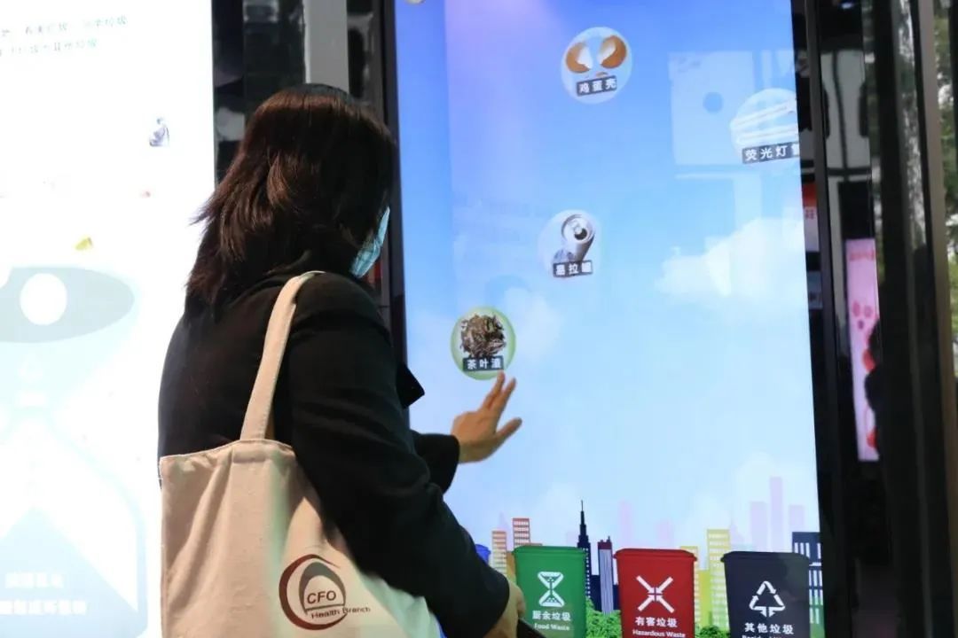 体验区为半开放式建筑,除有垃圾分类工作经验介绍外,还设置了饮水区、休息区以及环卫人员休憩区等。通过边玩边学、馆内讲解,让游客愉悦地学习到分类知识。