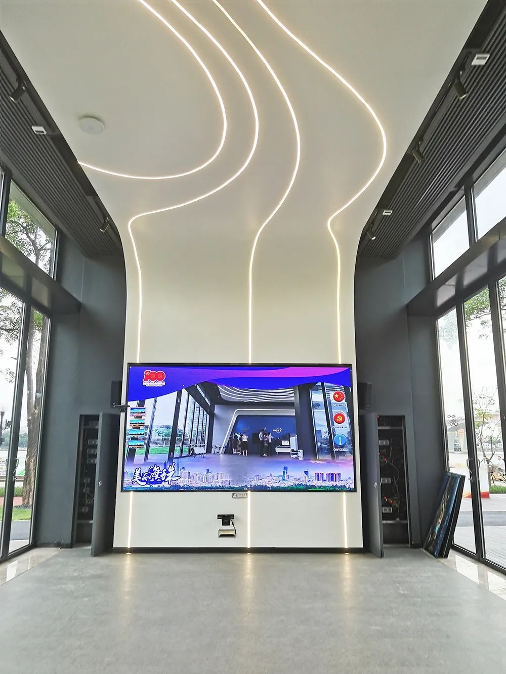 在互动区设置多功能智慧大屏幕,打造“融媒直播间”,可以在现场进行智能合影。