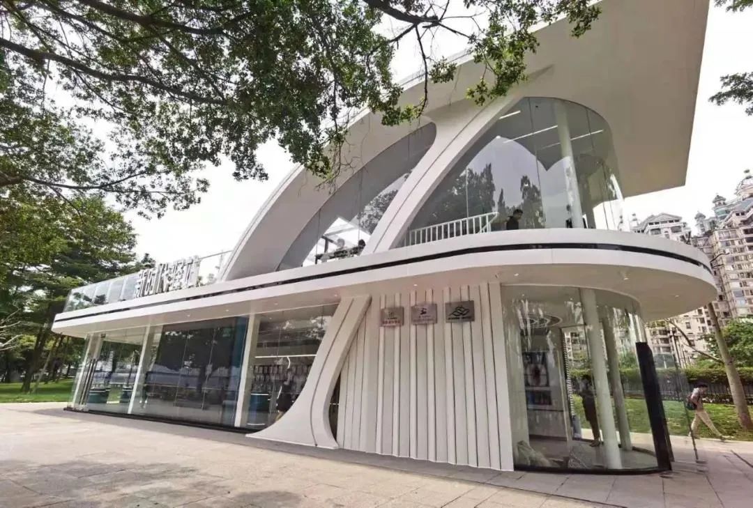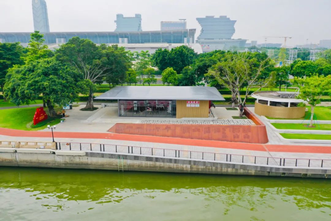 一层设有文化展示区和阅读区,二层设有便民休憩区和户外观景平台,游客可登上二楼平台的便民休憩区,将广州滨水美景尽收眼底。
