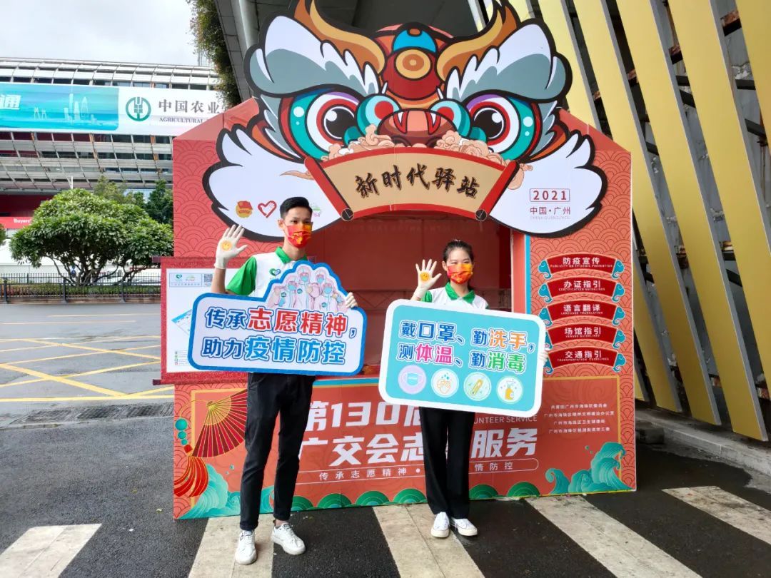 5个醒狮造型的新时代驿站主要承载广交会志愿服务工作,分布在广交会场馆南北两面的步行主干道旁,将为参展参会客商提供防疫宣传、办证指引、语言翻译、场馆引导等服务。