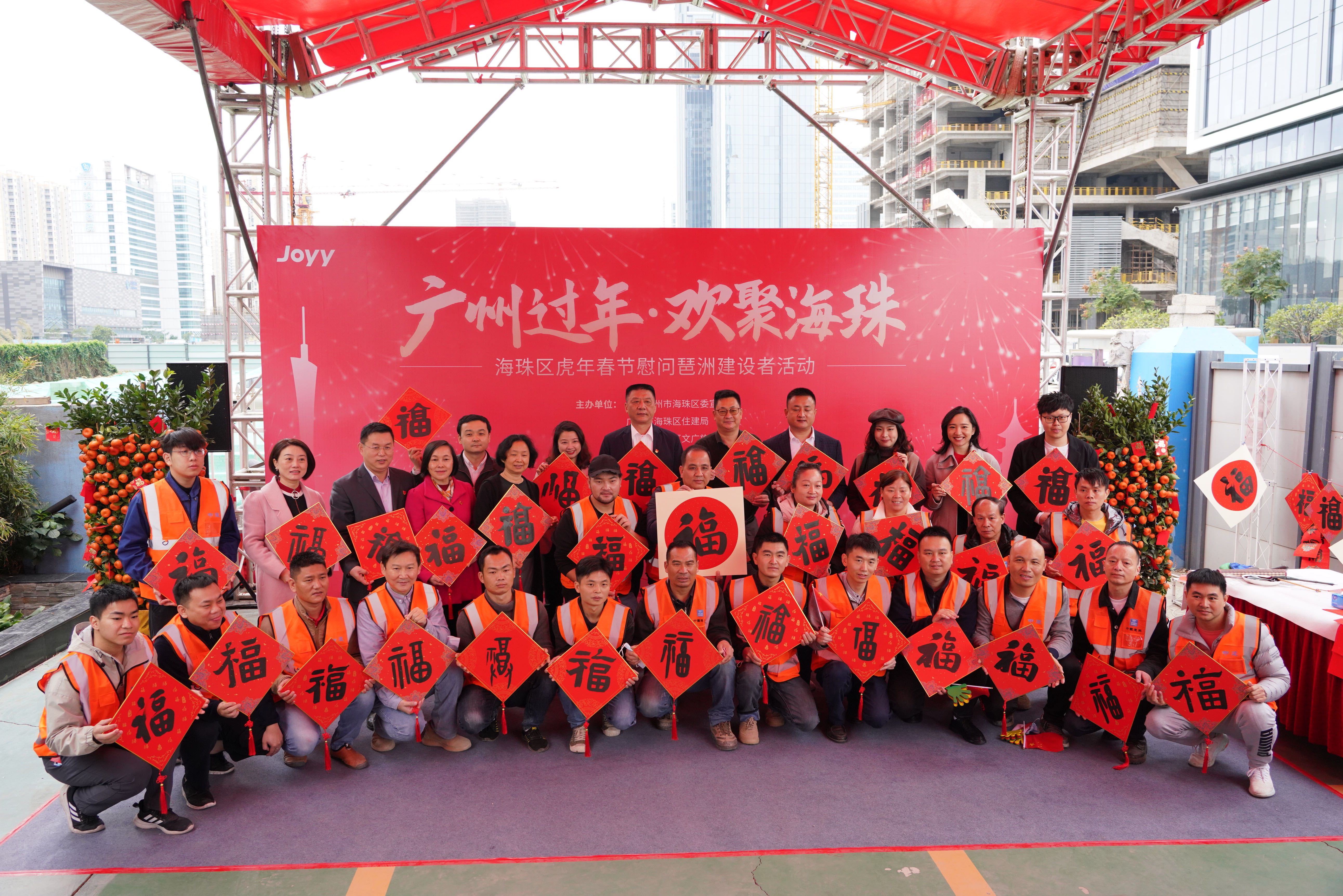 “新一代建设者更加注重精神文化享受。”年饭前,海珠区委宣传部、区委统战部、区住建局、区文广旅体局、区总工会和区文联等多个单位在琶洲试验区欢聚大厦项目部联合举办“广州过年 欢聚海珠”关爱慰问琶洲建设者活动,组织文艺工作者用歌舞、书画和趣味节目等向琶洲建设者送上慰问和祝福。