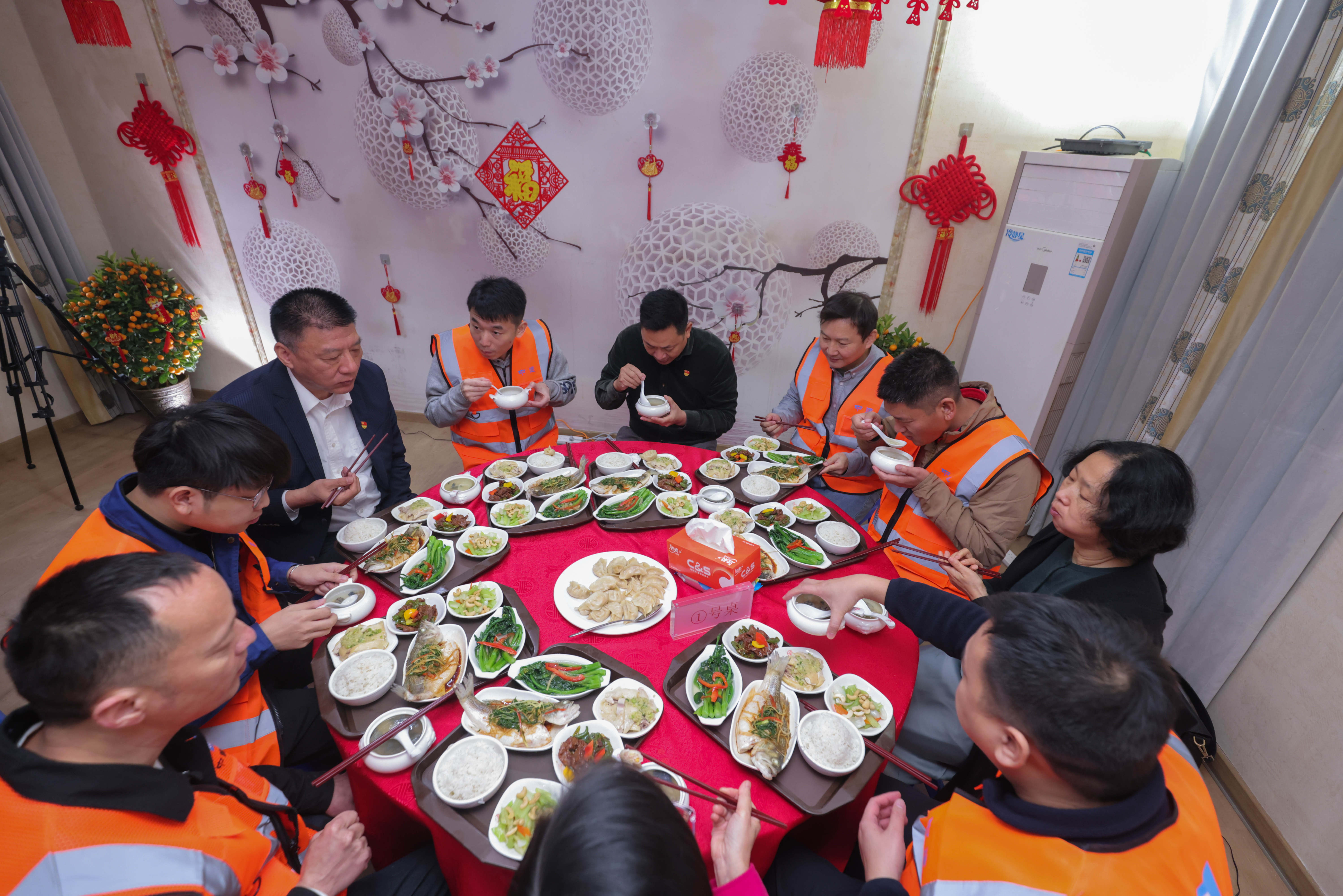 “没想到春节留守在琶洲建设工地,也能尝到浓浓年味儿。”陈新合说,“之前跟家人说今年不回家,他们担心我过得不热闹。今天看到这么多工友和美食,他们的心也放下了。”