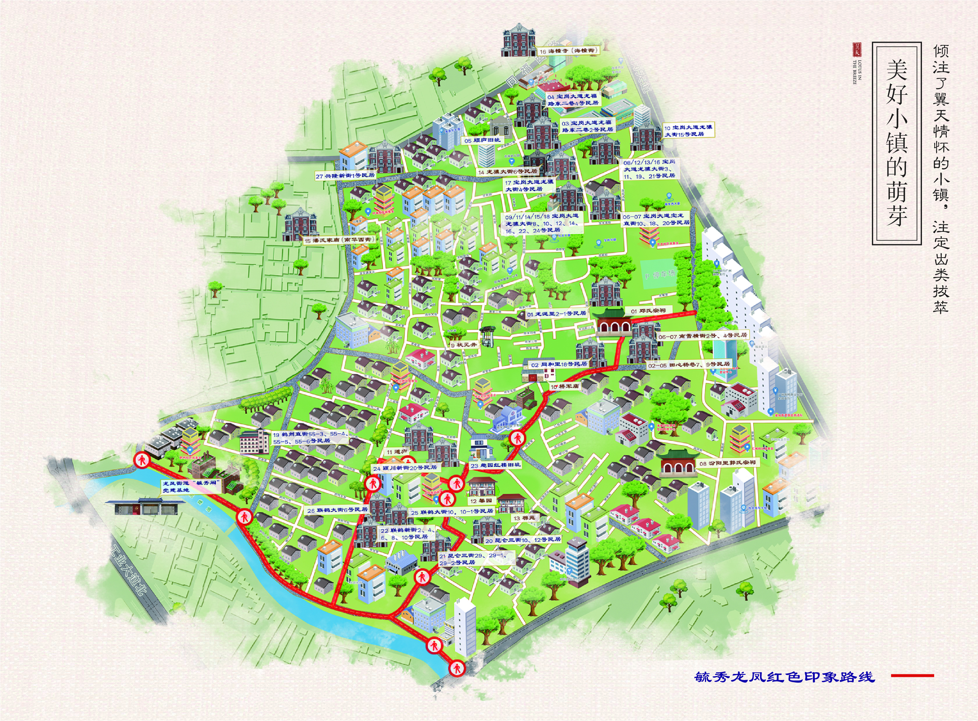 目前,二龙片区高品质提升示范区建设初见成效,并于近期建成了毓秀龙凤红色印象路线,为二龙片区的人居环境注入更多“红色文化”“红色元素”。以上两张地图,龙凤街均印制了纸质版,放置在辖内主要的商场、酒店、公共服务场所等,供居民旅客阅览。居民旅客只需拿着这个地图,就可以知道龙凤街以及二龙片区哪里好看,哪里好玩。