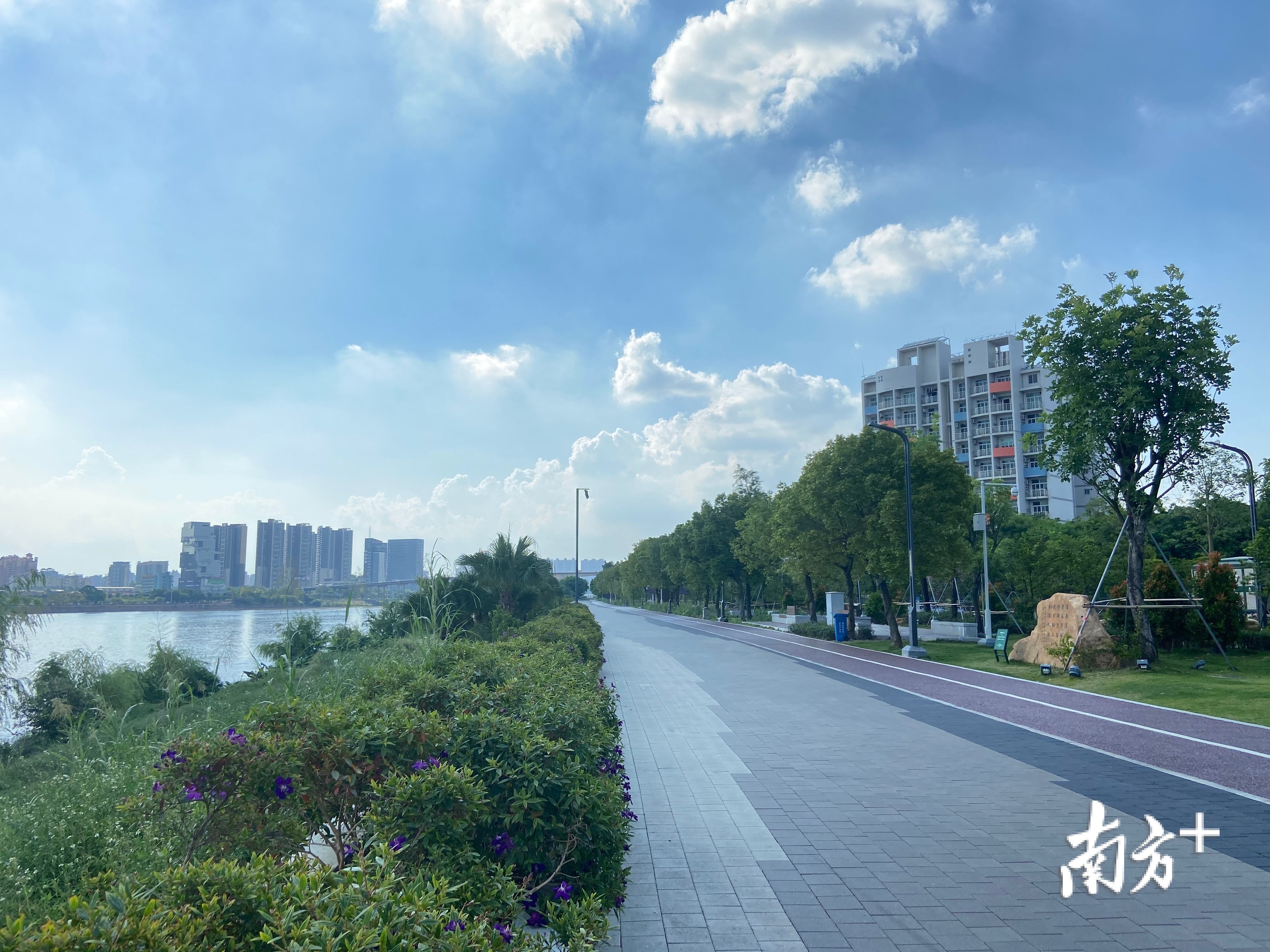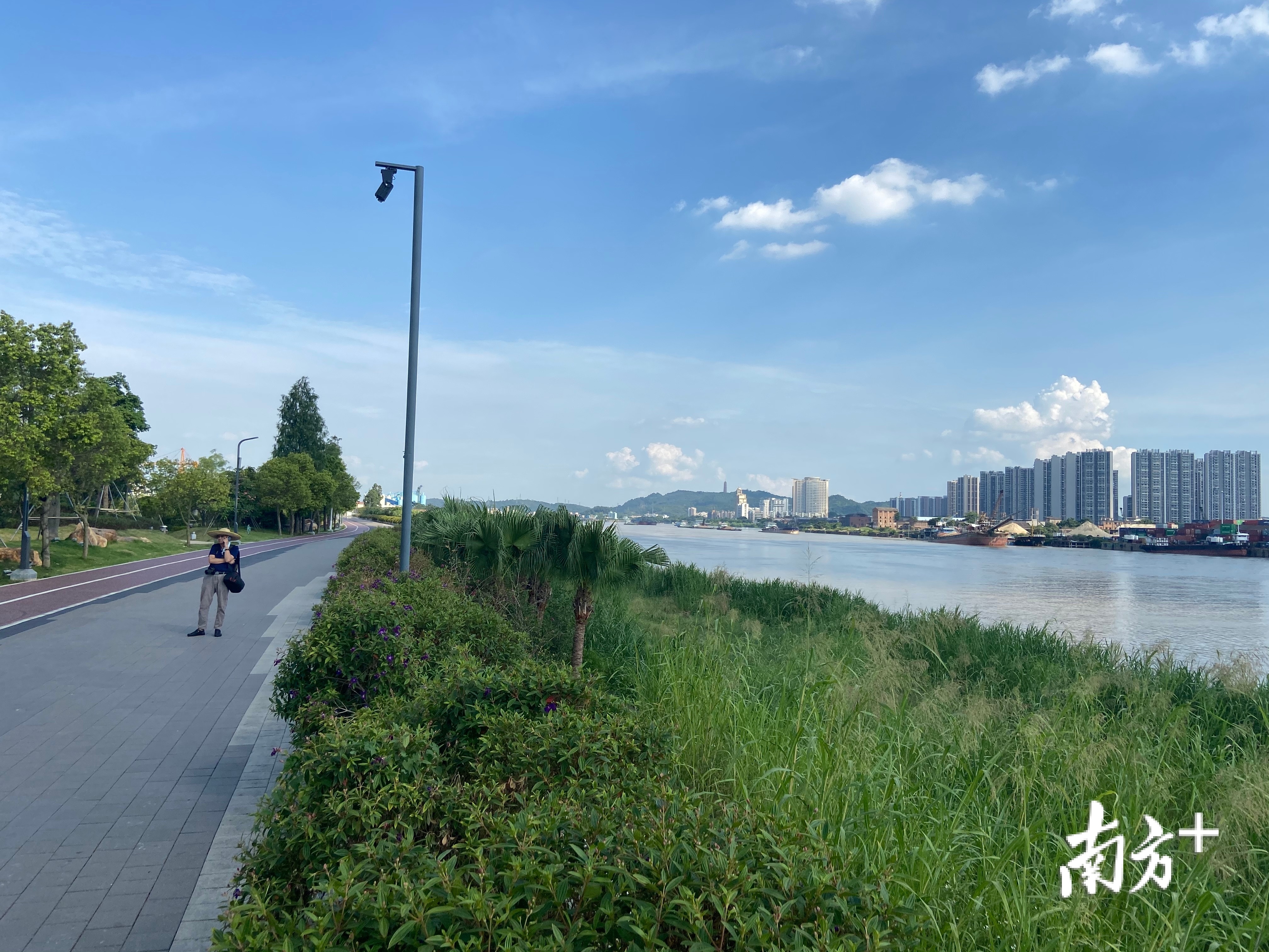 “在环人才岛公园碧道的建设过程中,针对其独特的地理环境——在西江边,是水源保护地,水质已经达标,我们主要工作是对堤外岸边原来的一些杂树进行清理,拓宽江面视野,同时对沿岸进行景观提升。”蓬江区农业农村和水利局副局长钟文学说。