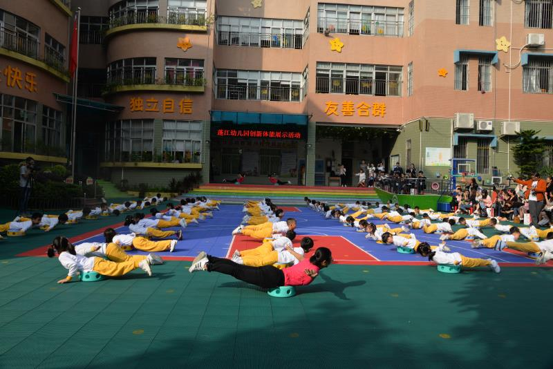 蓬江幼儿园篁庄园区占地面积6000㎡,建筑面积1200㎡,户外面积4800㎡,园区环境优美,绿草茵茵,树木成林,户外活动场地充足。依托蓬江幼儿园丰富的幼儿体育教学教研经验,篁庄分园将打造成为“我运动、我健康、我快乐”的体育特色园,着力培养“健康快乐、独立自信、友善合群”的幼儿。