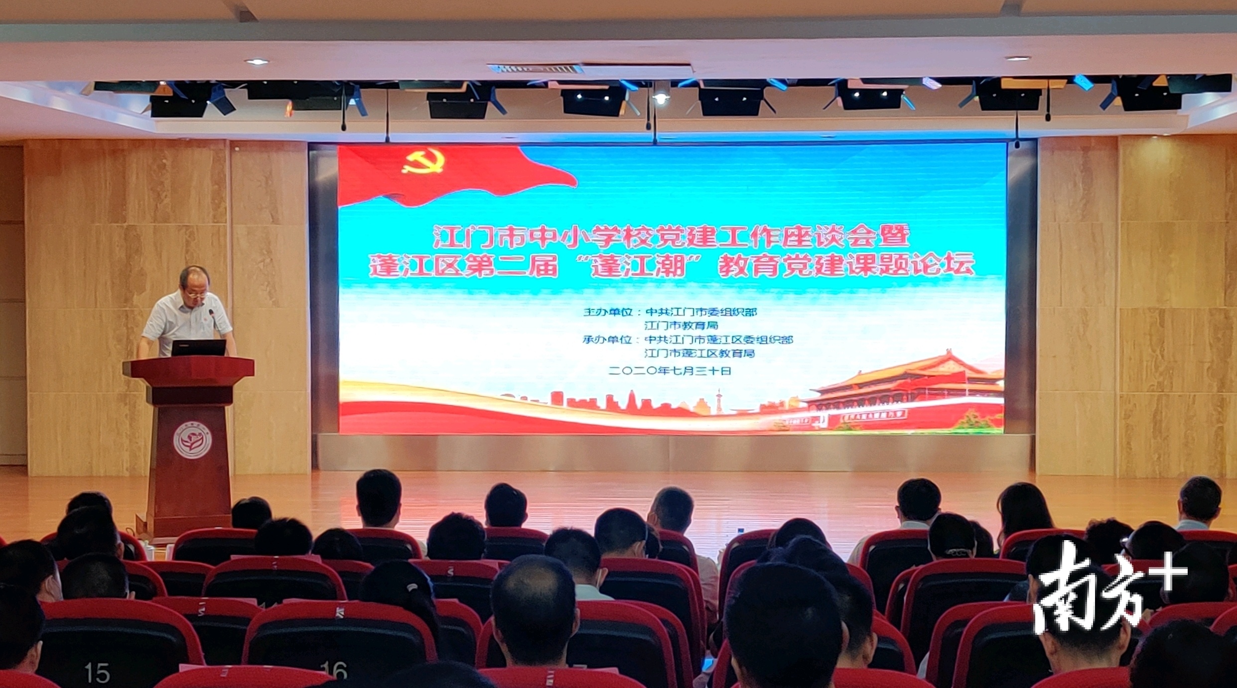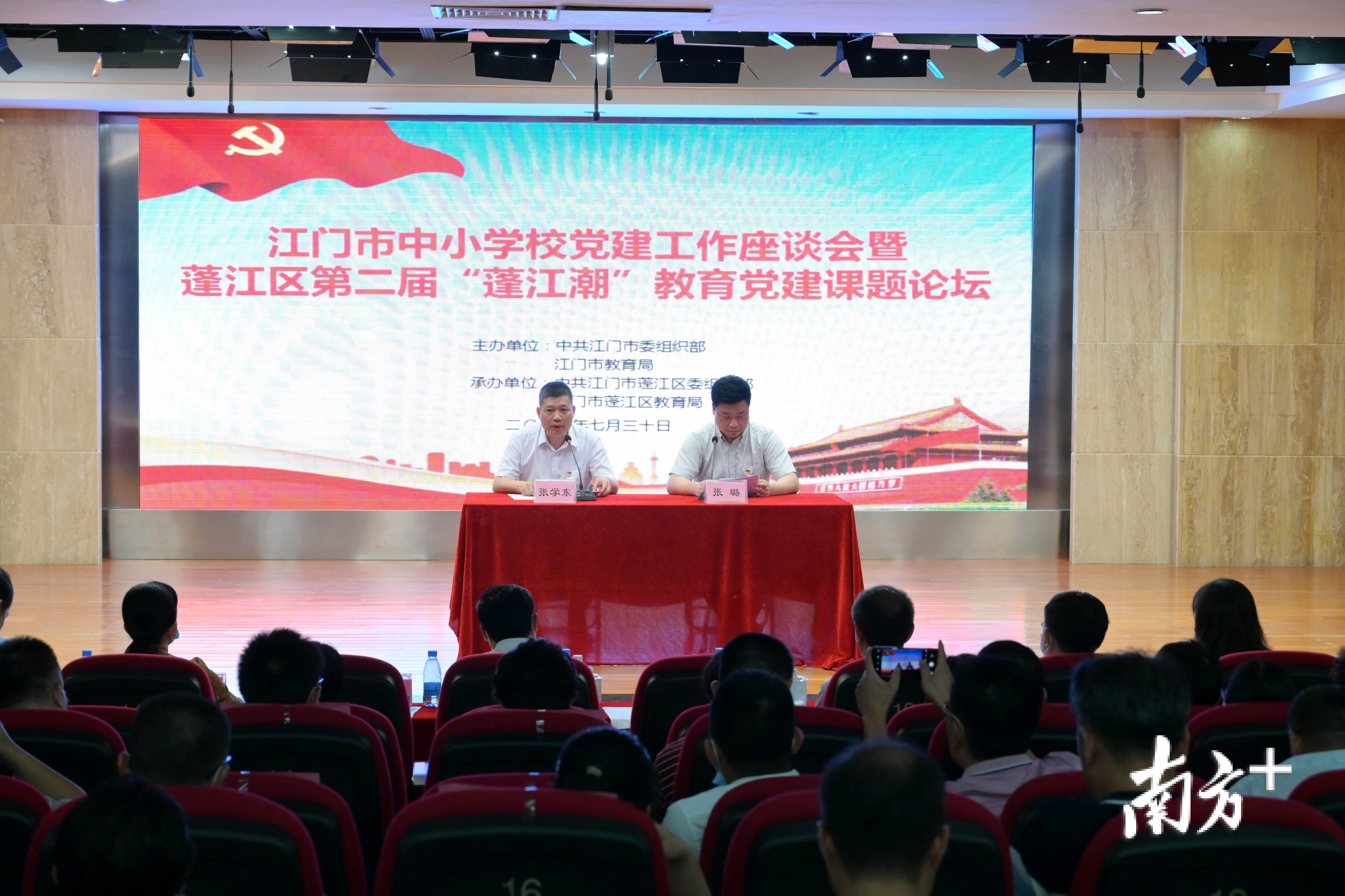 江门市中小学校党建工作座谈会暨蓬江区第二届“蓬江潮”教育党建课题论坛在紫茶小学举行。蓬江区委组织部供图