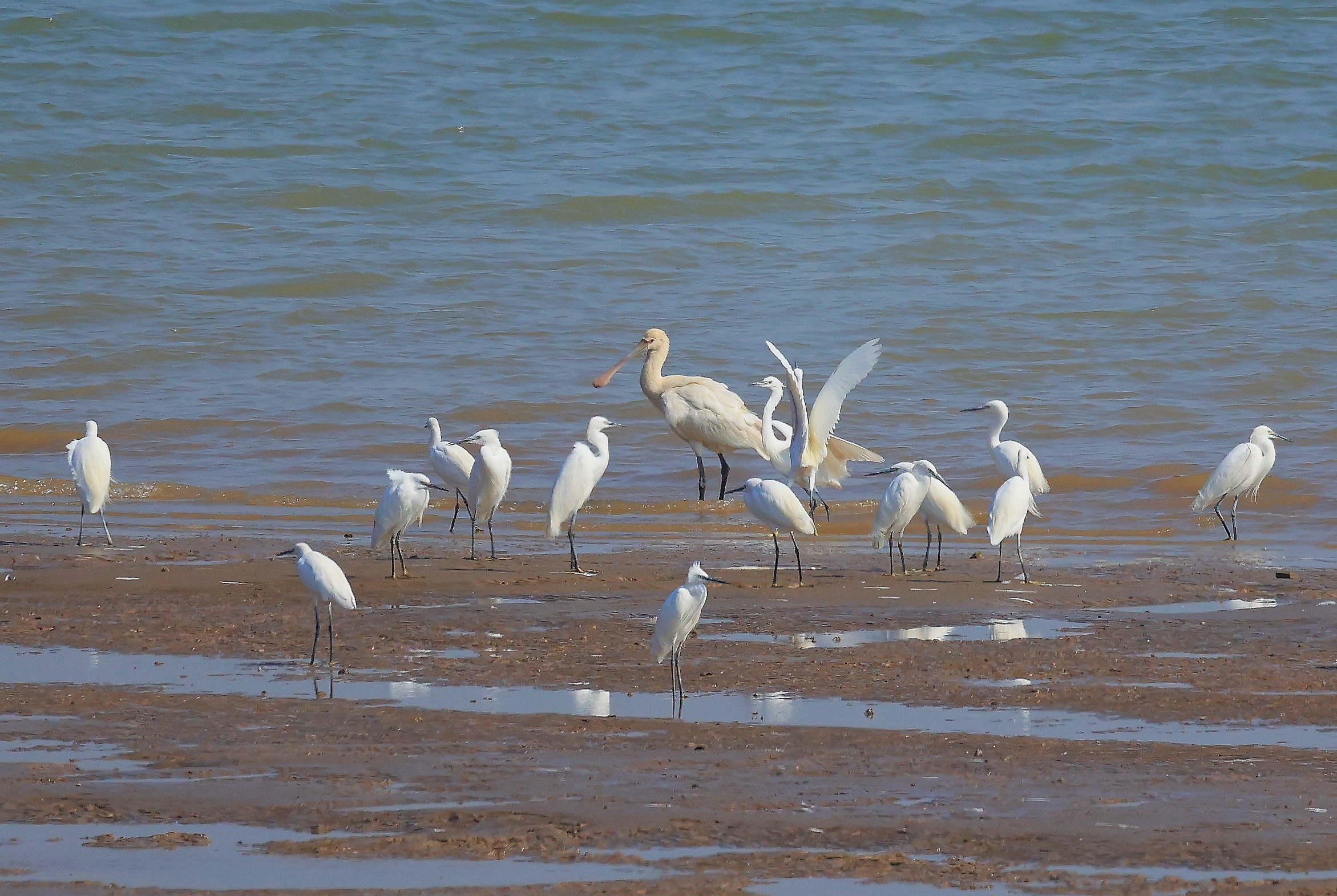 近日,有观鸟爱好者在江门市蓬江西江大堤见到国家二级保护野生动物白琵鹭。