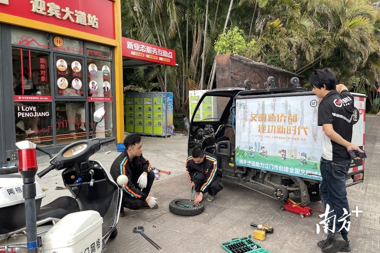 蓬江区还在城市商圈、骑手接单密集的地段建成4个“蓬友+”党群服务站,开放主城区87个社区党群服务中心资源,为户外跑单的小哥休憩歇脚、饮水乘凉、参与活动提供好去处。与骑行之家党支部联动,在骑手聚集的街角,插缝见针设立22个互助服务站、配备132个不同应用场景的换电点,提供优惠换电、自助维修、紧急救援等服务。