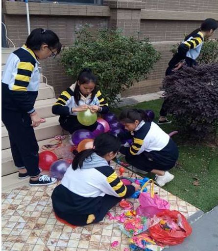 12月28日下午三点,10名心灵手巧的学生就已经先抵达幼儿园,并参与现场环境布置。