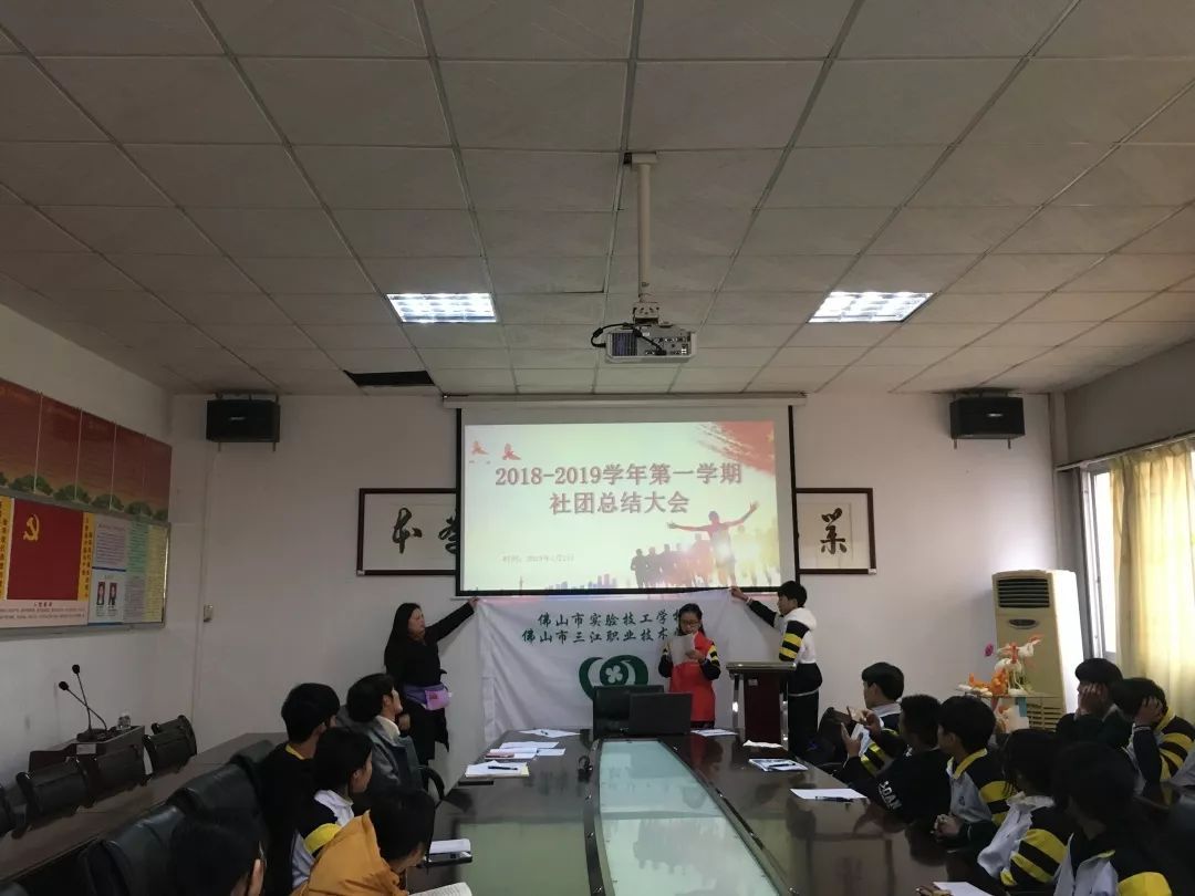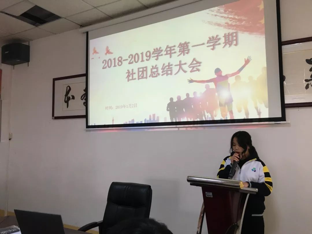 2018-2019学年第一学期社团总结大会及评优由学生科组织召开,会中各社团指导老师、学生先进个人候选人纷纷对自己这一学期以来的工作进行总结,并讲述对下学期社团的新展望。其中,“影妆社”美容创业社团罗列了本学期的开展情况,他们经过努力共同赚取经费,让大家投来赞许的目光;“环保志愿者协会”为大家展开自己社员们创设社团的爱心旗帜,以及新设计的环保衣服讲解,号召大伙儿向爱心团队的加入;更有雕刻社呈现出惟妙惟肖、生机勃勃的雕刻作品。