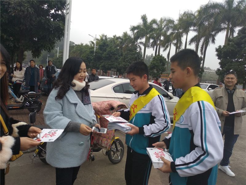 1月8日,三水中学附属初中的学生志愿者利用放学时间对前来接孩子放学的家长进行禁毒宣传,全面提高了人民群众的知毒、恨毒、防毒、拒毒、禁毒意识。