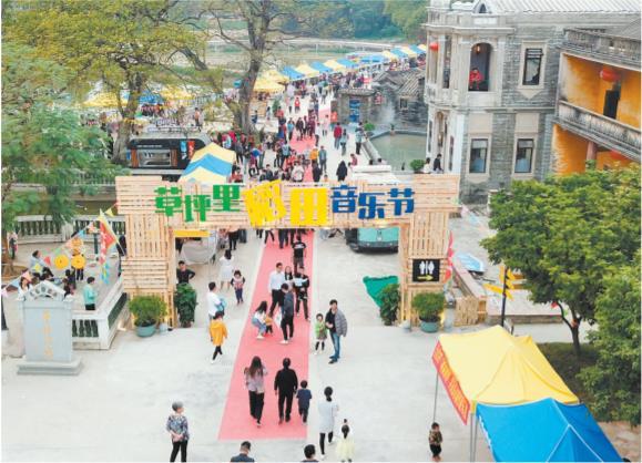 2019年12月28-29日,来自深圳的根据地乐队、一晨风夏乐团、赞兄弟组合、茉莉组合以及台山本土音乐人,在台山市水步镇草坪村举办稻田音乐会,他们用独特的音乐方式诉说稻田故事。观众们和着节拍,挥舞着手机,陶醉其中。这次音乐会是草坪村开发文旅项目以来举办的首个大型活动,旨在吸引大家到村里游玩,看看这里的新变化。