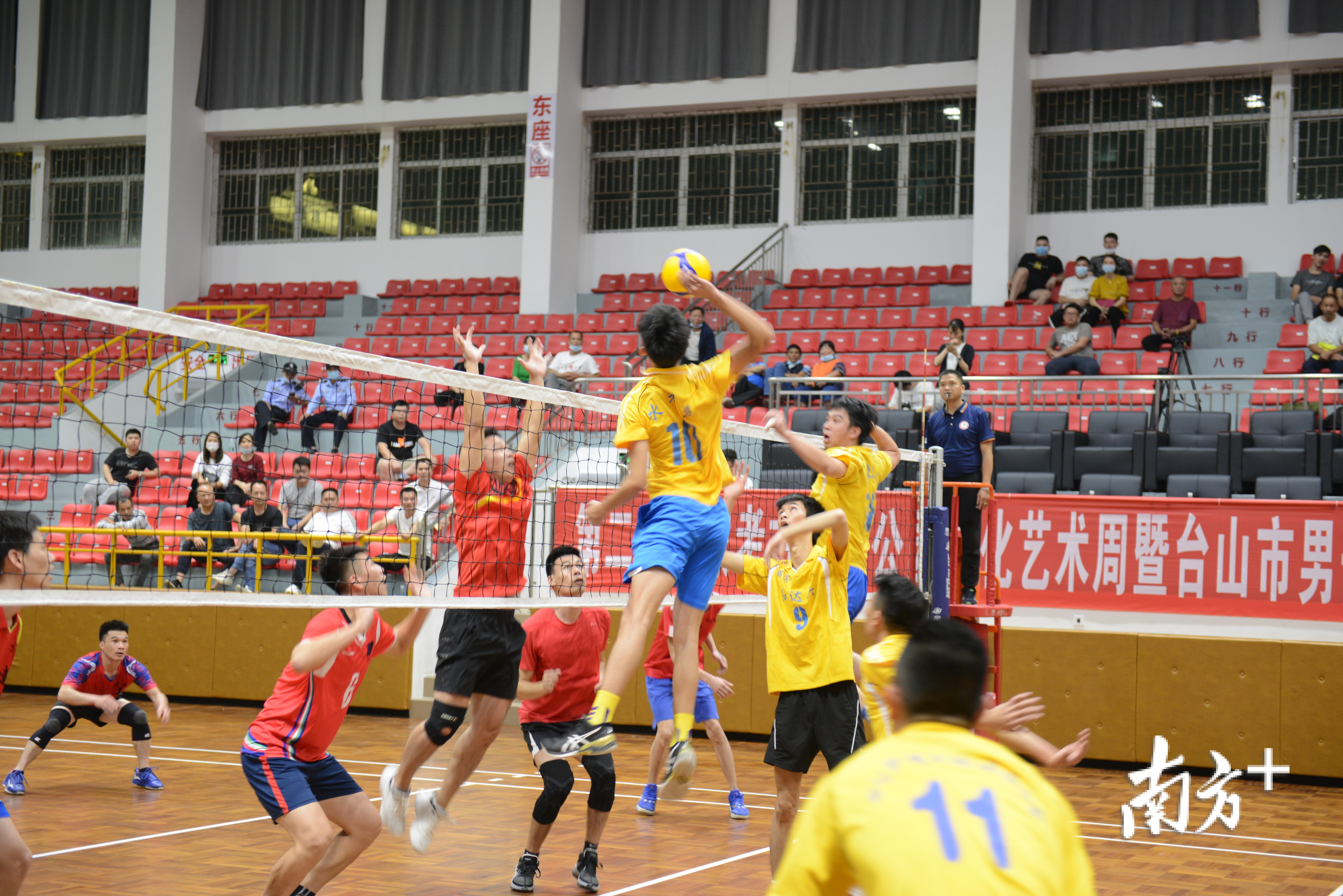 文化艺术周举行的九人排球精英赛,是台山最受欢迎的传统体育运动项目之一。台山享有中国“排球之乡”的美誉,台山排球运动始于1914年,由华侨将排球带回家乡最先开展排球活动。1919年,第三届远东运动会后,排球比赛规则由16人制改为12人制,1928年排球赛制确定为9人。九人排球在台山有着广泛的群众基础。