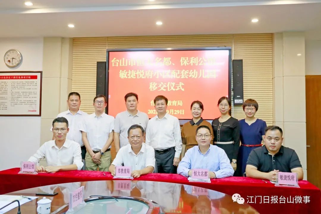 活动中,台山市教育局分别与恒大名都、保利公馆、敏捷悦府等三家房地产企业签订了移交协议。