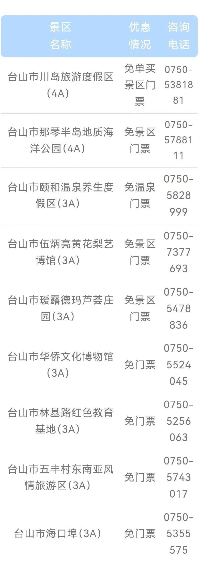 台山A级旅游景区优惠情况