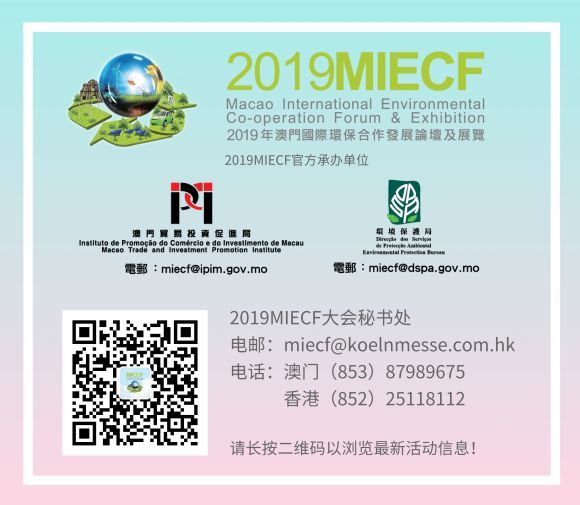 由中华人民共和国澳门特别行政区政府主办,得到国家发展和改革委员会、国家科学技术部、国家工业和信息化部以及国家生态环境部作为特邀支持单位,并由泛珠三角省/区政府协办的2019年澳门国际环保合作发展论坛及展览(2019MIECF)将于3月28日-30日举行。