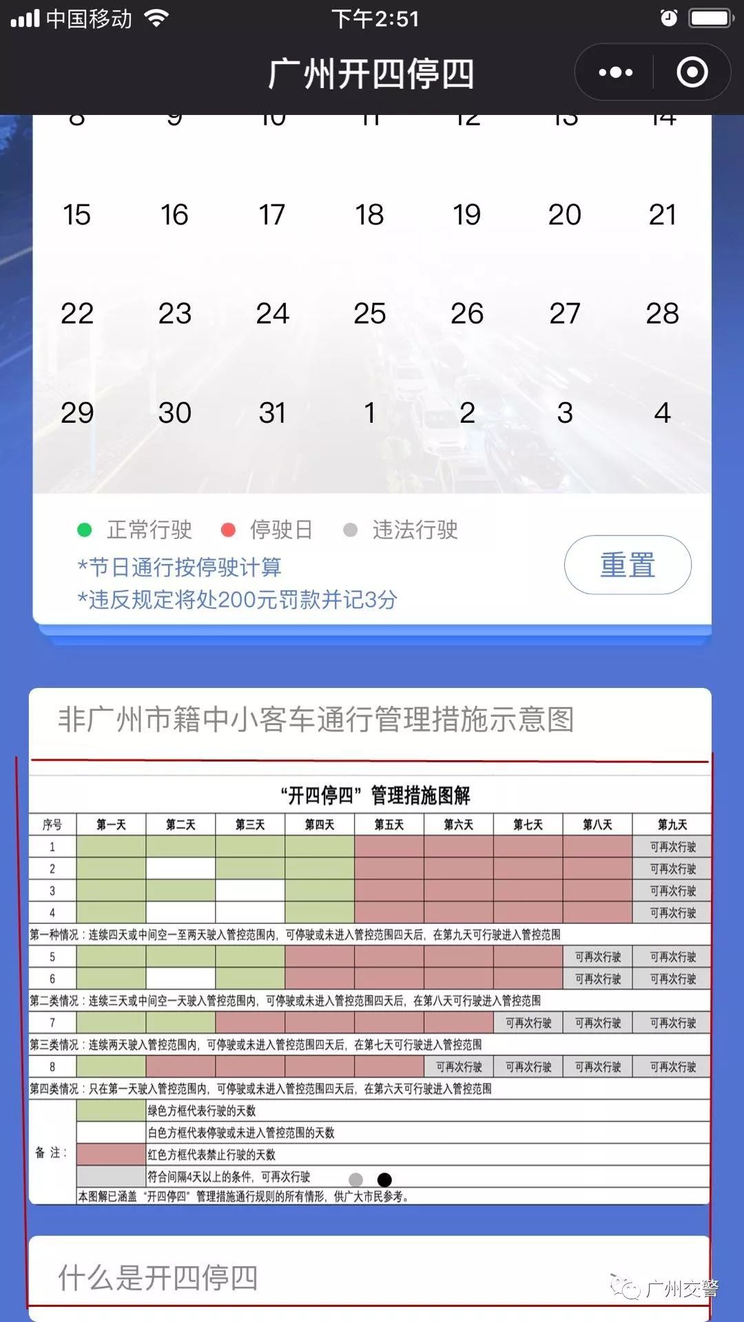 非广州市籍中小客车(含临时号牌车辆)驶入管控区域连续行驶时间最长不得超过4天(自然日,下同),再次驶入须间隔4天以上,简称“开四停四”管理措施。