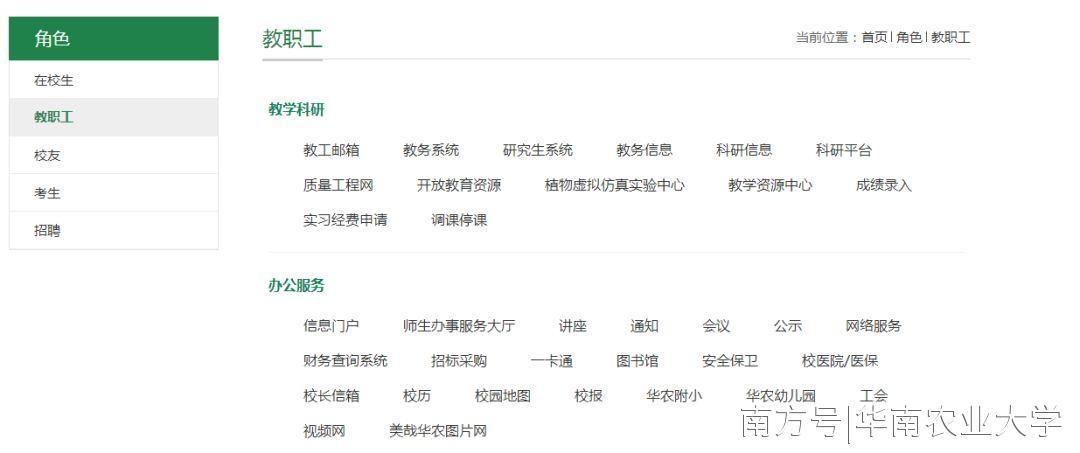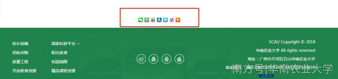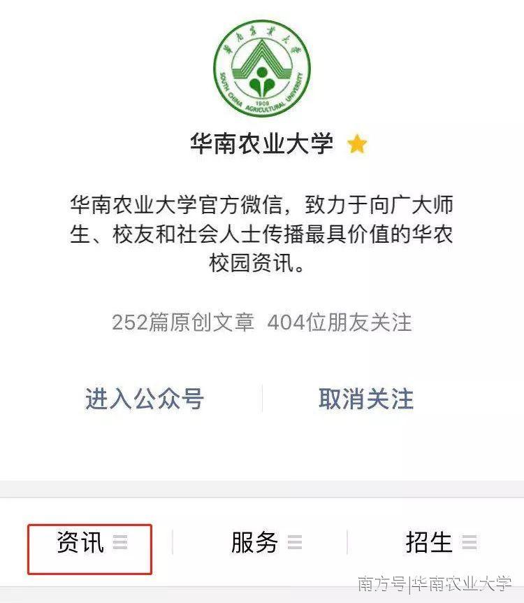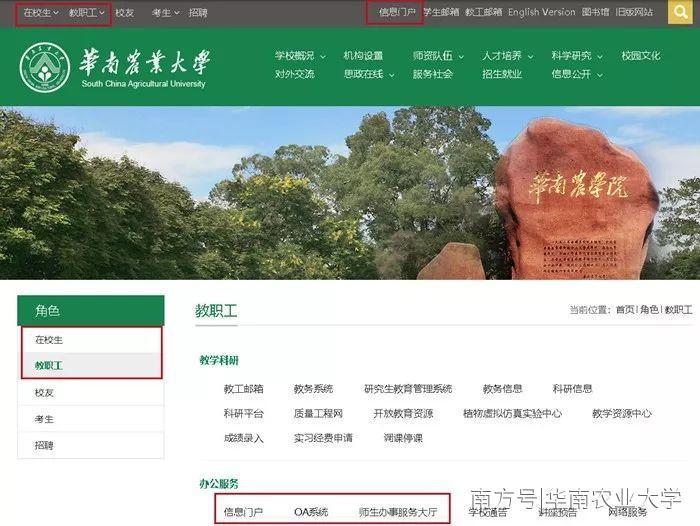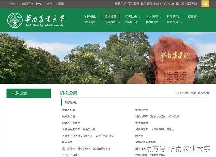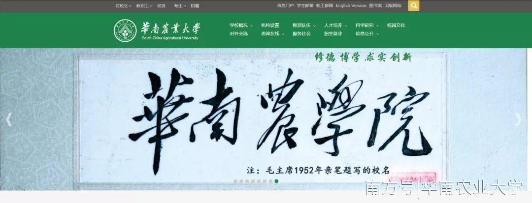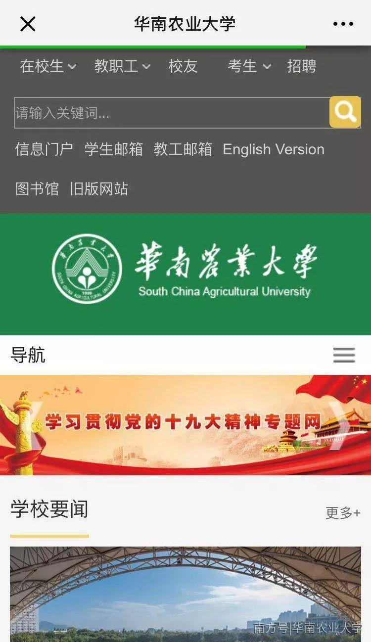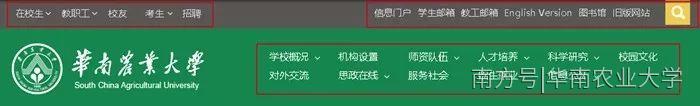 华南农业大学官方微信号也可以进入新版官网。