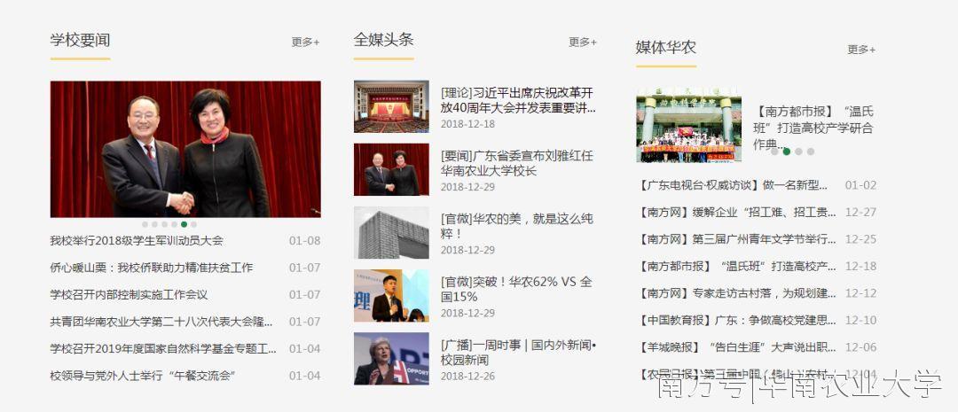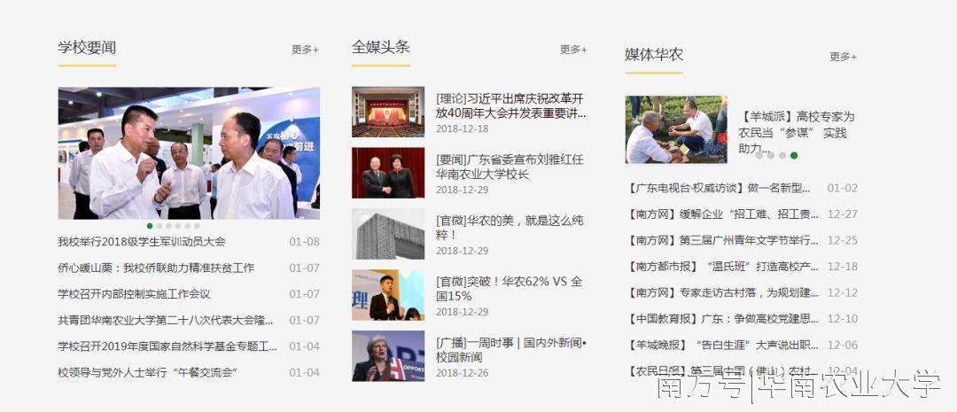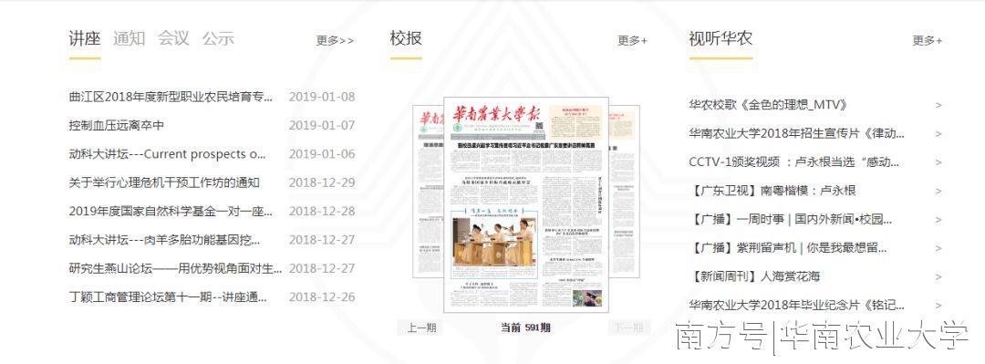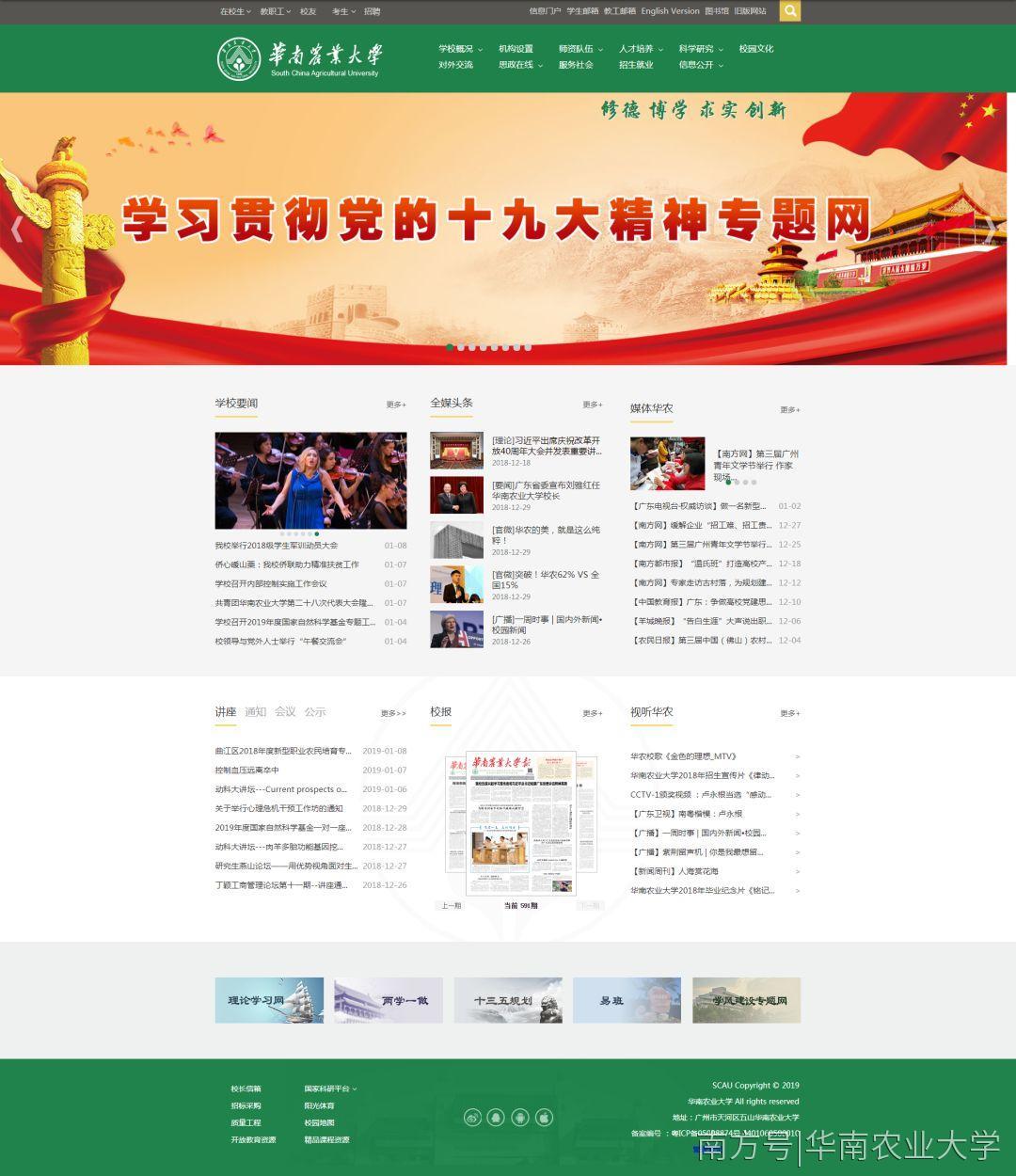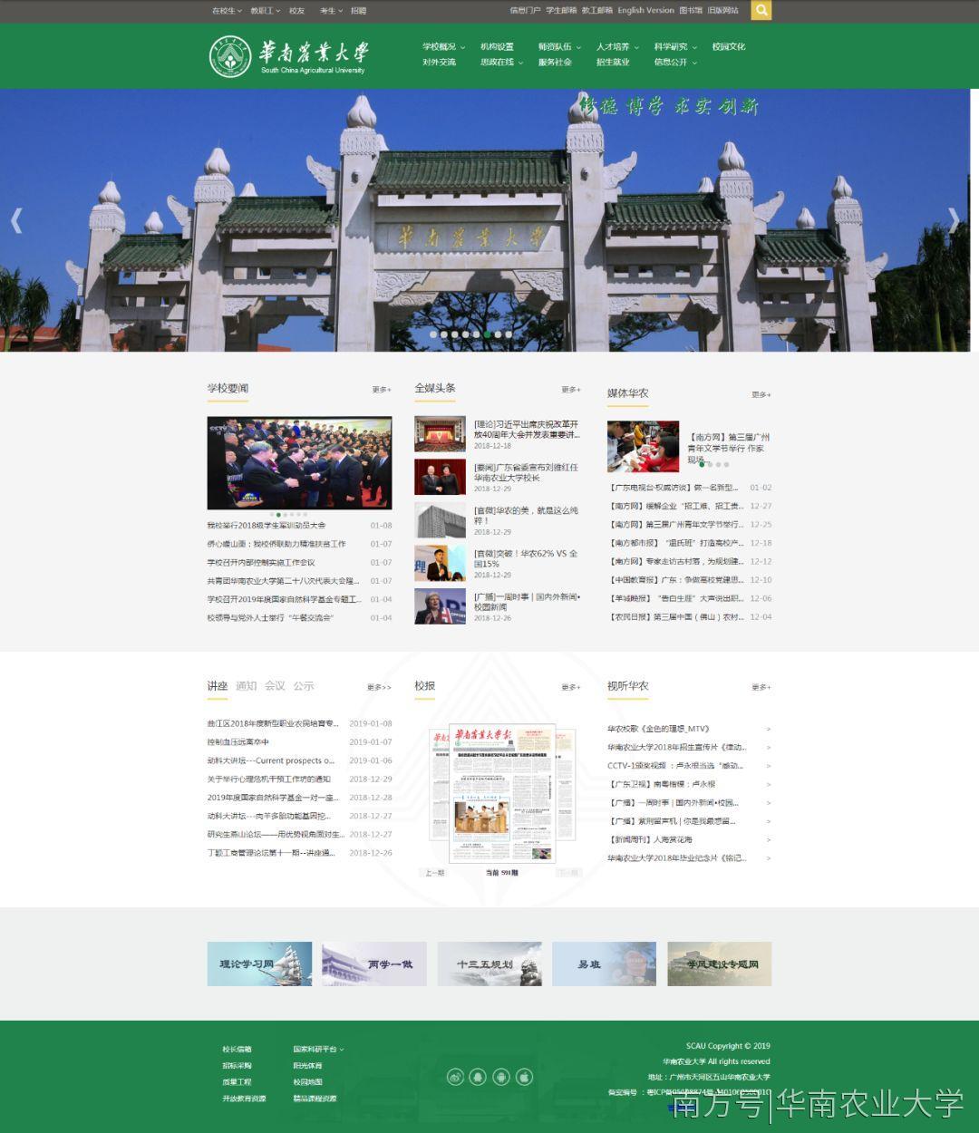 2019年1月1日,伴随着新年的钟声,全新改版后的华南农业大学校园网主页正式亮相。