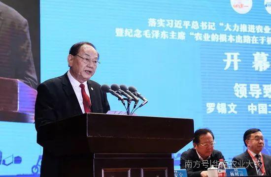 中国工程院院士罗锡文代表会议主办方在开幕式上致辞,并在加快推进农业机械化和农机装备产业转型升级专题论坛上作了题为“对我国农机科技创新的思考”报告。