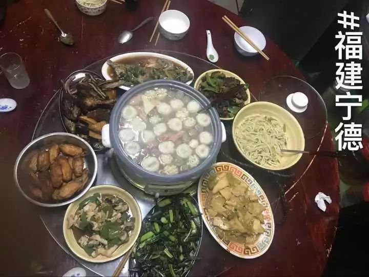 印象最深的其实就是中间一大盆的丸子!想对外地的朋友们说,鱼丸是有馅的。最后,感谢家里的美食前十八年把我养的白白胖胖的!