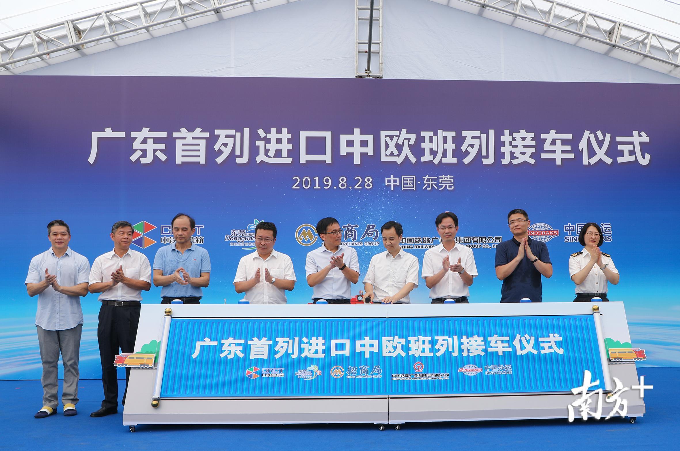 当天,广东(石龙)铁路国际物流基地为广东省首列进口中欧班列举行了隆重的接车仪式。