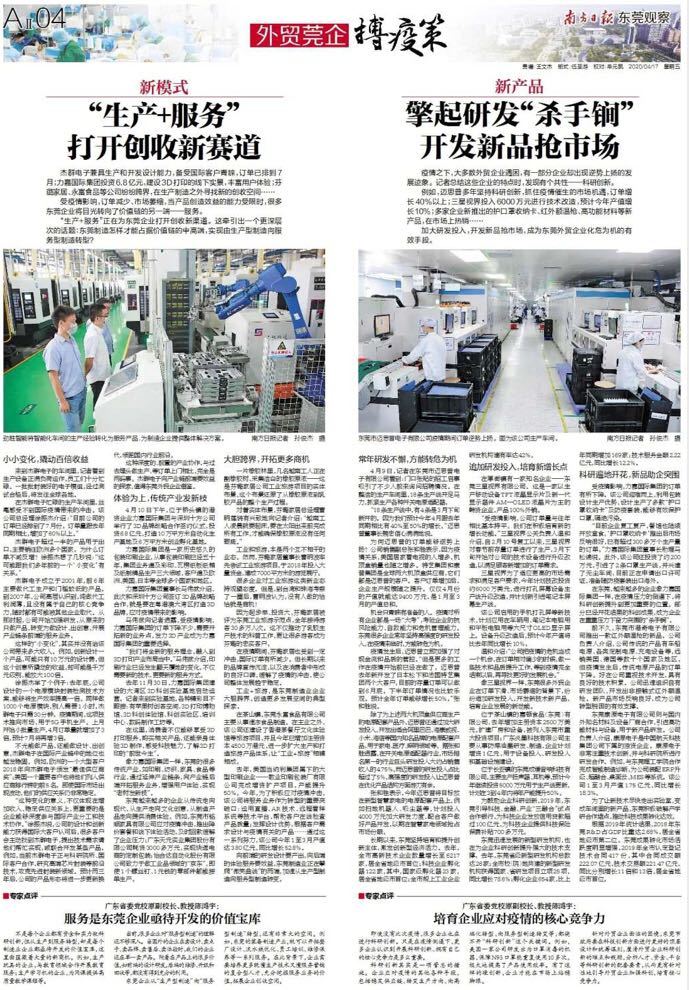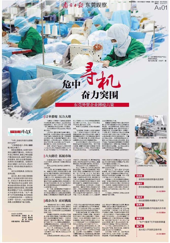 连日来,南方日报记者相继调研了近百家东莞外贸外资企业,总结出6条相对有效的抗“疫”路径供全市企业参考:依托供应链优势强化话语权、抓住发展趋势向高端化转型、顺应疫情需求调整生产方向、创新营销模式开拓国内外市场、“生产+服务”打开创收新渠道、加大研发投入开发新品抢市场——东莞企业正想尽一切办法,八仙过海各显神通,在疫情围堵下奋力突围。