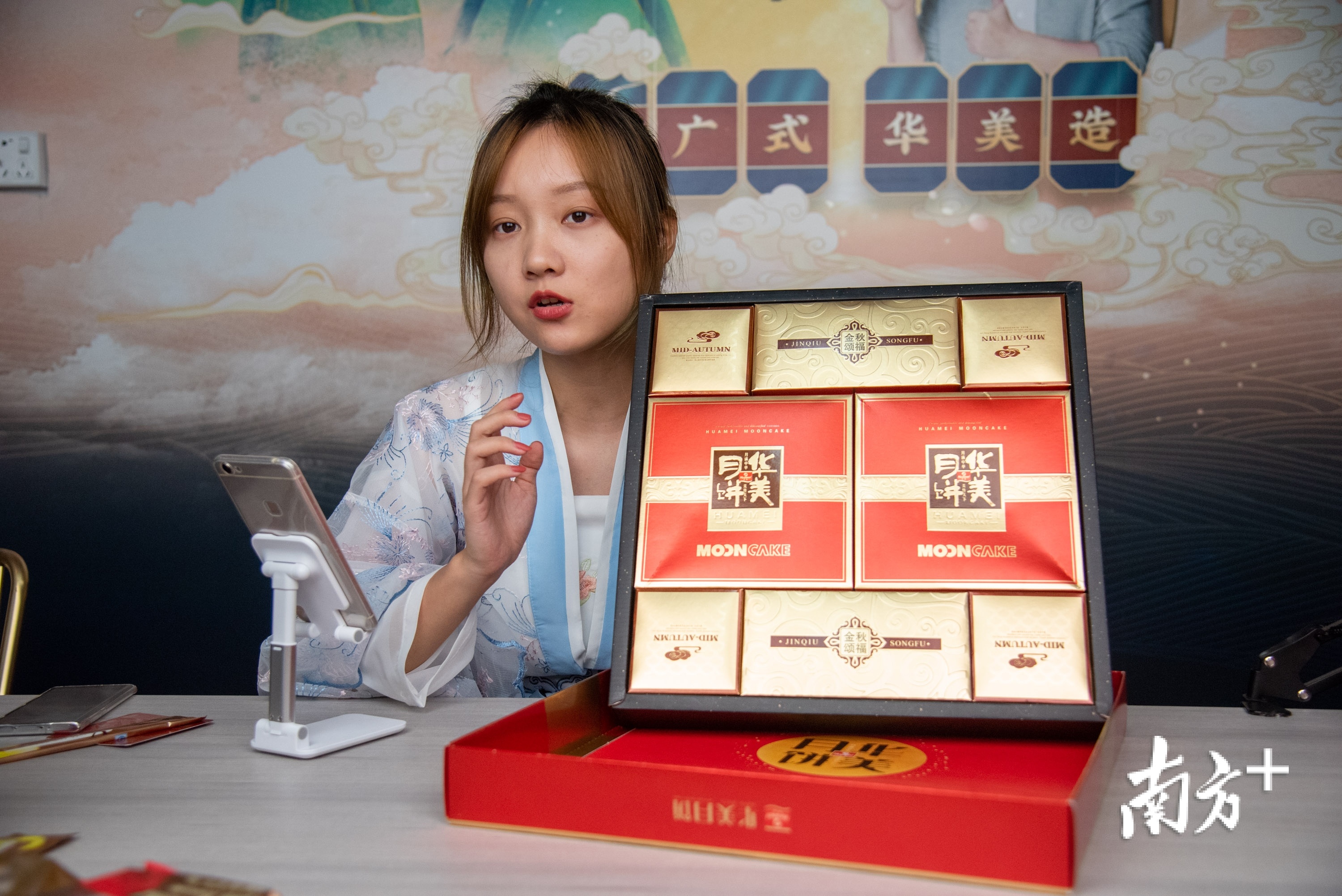 华美集团内部的直播带货空间里,三组主播同时向网友推荐华美经典月饼和新口味月饼,其中就有华美集团报名参加“2020品质东莞直播带货大赛”的“华美双黄纯白莲蓉”月饼。华美集团电商部总经理张惠卿介绍,今年借助直播带货,月饼线上销售额将在去年基础上增长40%。