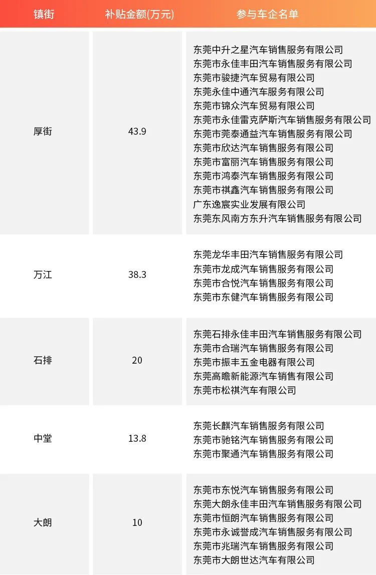 根据“乐购东莞”汽车主题消费节总体工作方案,市根据第一轮镇级促汽车消费补贴实际投入情况进行配比奖励,第二轮市级配比补贴额度为126万元,定向投放给厚街、万江、石排、中堂、大朗五个镇街(每个镇街补贴额度有差异),相关补贴金额通过云闪付发放。