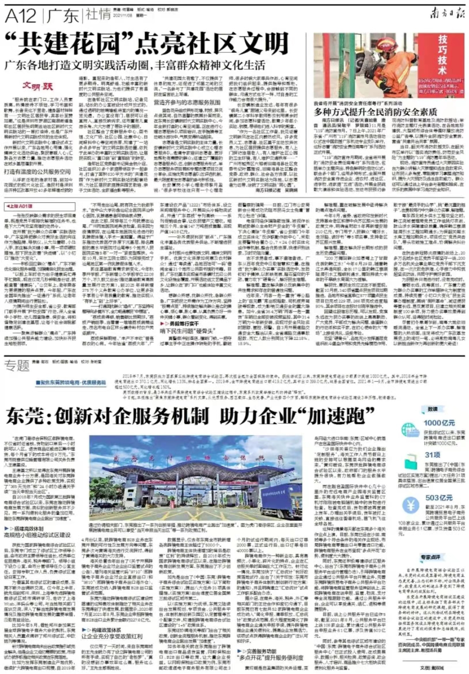●503亿元:截至2021年8月,东莞跨境贸易电子商务公共服务平台已上线108家企业,累计通过公共服务平台申报业务6.1亿票,涉及货值503亿元。