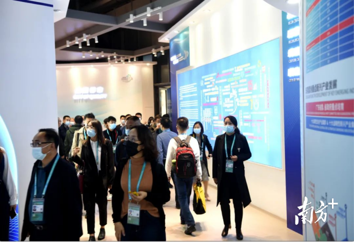 展板上的数据显示:截至2020年底,东莞规模以上工业企业总数达10861家,总量稳居全省第1位,全国第2位;国家高新技术企业总数6385家,拥有自主品牌和研发机构的加工贸易企业占比超过四成,委托设计和自有品牌产品出口占比超过七成;41个工业行业大类中东莞已有34个,形成了涉及6万多种产品的比较完整的制造业体系,其中电子信息产业的综合配套率、自我配套率超过90%。