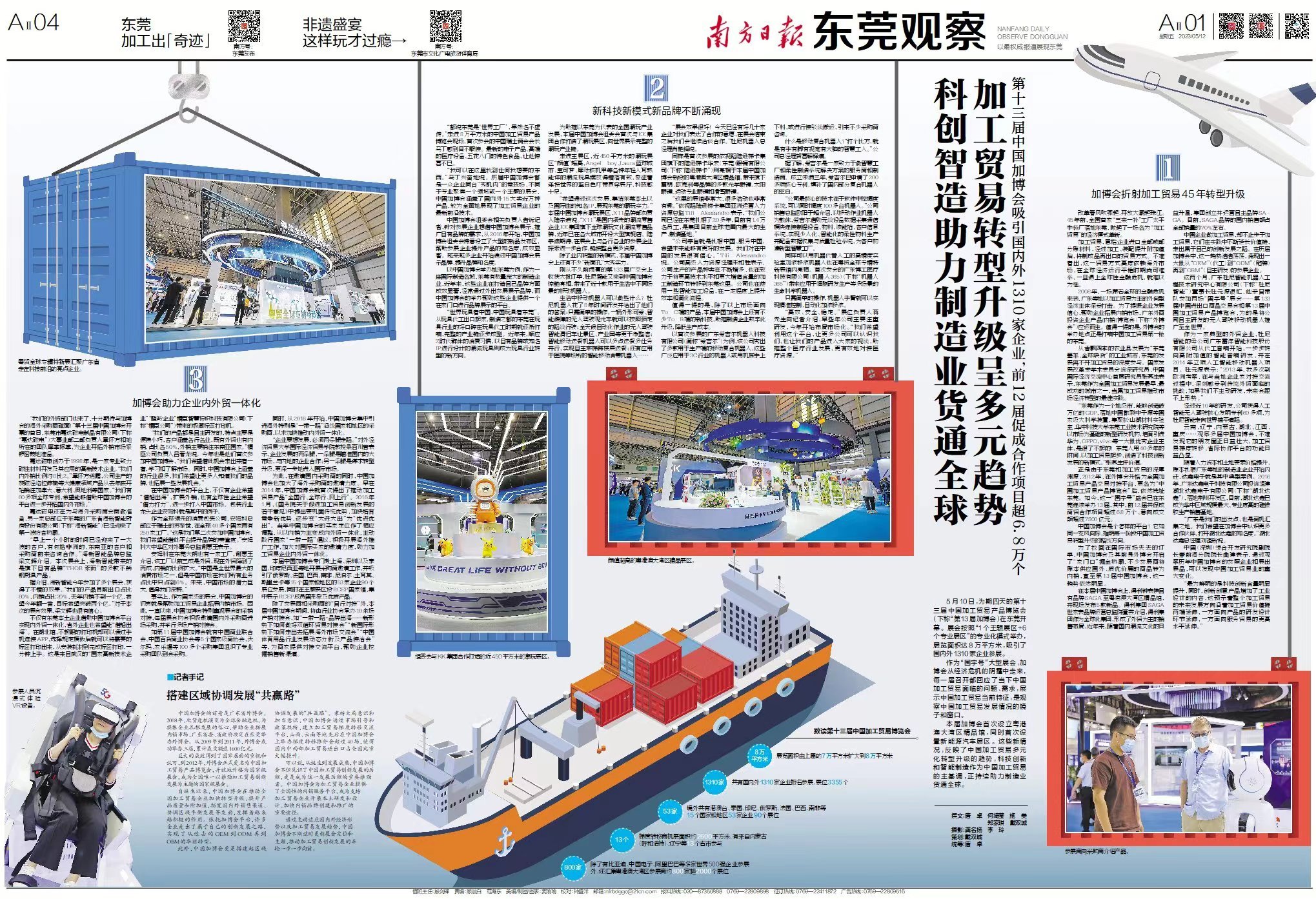 本届加博会首次设立粤港澳大湾区精品馆,同时首次设置新能源汽车展区。这些新情况,反映了中国加工贸易多元化转型升级的趋势,科技创新和智能制造作为中国加工贸易的主基调,正持续助力制造业货通全球。