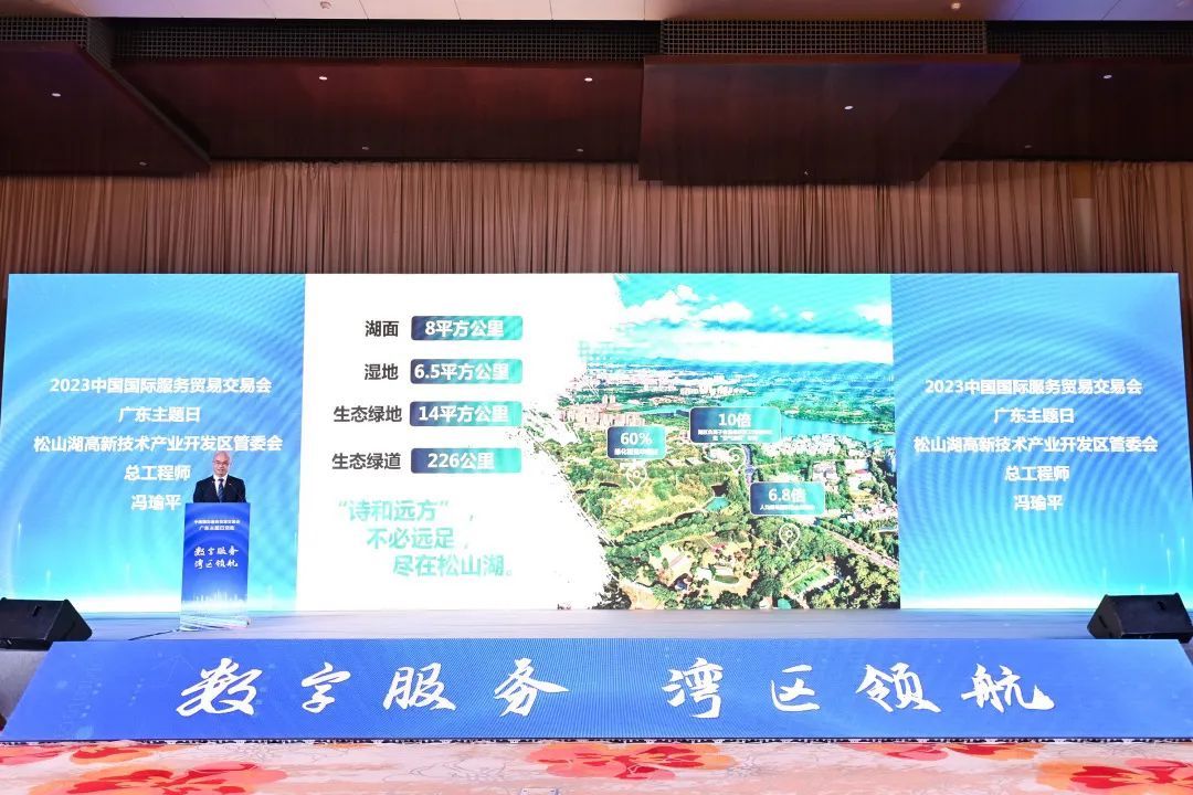9月2日下午的广东主题日活动中,东莞松山湖管委会作了专题推介,重点介绍松山湖数字贸易、服务外包发展情况。