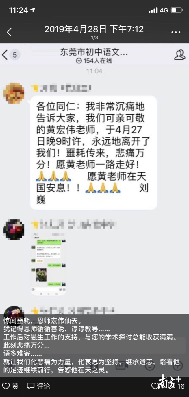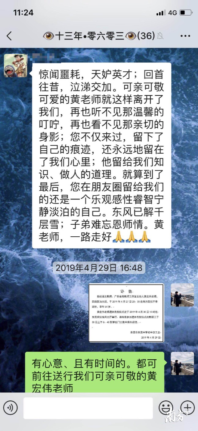 2017年9月,在东莞庆祝教师节茶话会上,东莞中学初中部语文高级教师、广东省名教师工作室主持人黄宏伟被评为东莞市“最美教师”,彼时,南方+也曾对黄宏伟进行专访报道。不曾想,一转眼不过一年多的时间,却物是人非,斯人已逝。