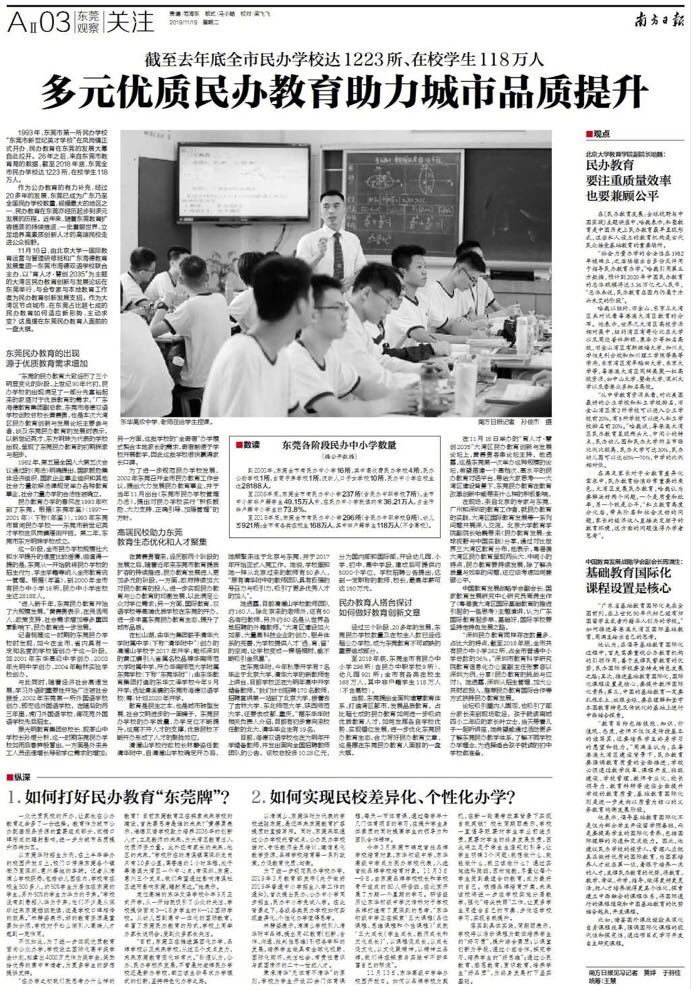 “目前,东莞正在推进集团化办学、品牌学校以及未来学校,从这三个支点发力,未来东莞教育变化非常大。”孙煜认为,公办、民办学校齐发展,不管是对老牌民办学校还是新办学校,都应该主动寻求办学模式的创新,坚持特色化办学之路。