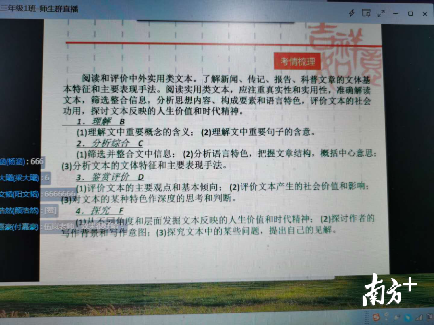 “根据教学计划,能实现统一教学的课程,我们组织老师上大课,针对教学内容,再安排各班开设小课,老师在线答疑。”东莞高级中学相关负责人介绍,目前学校暂定了一周的学习计划,未来会根据一周的实施情况,进一步调整安排。其透露,网络教学不确定的因素很多,比如今日上午学校的地理直播课就出现掉线情况,“做好线上的同时,也要引导学生自主学习,提高学习效率。”